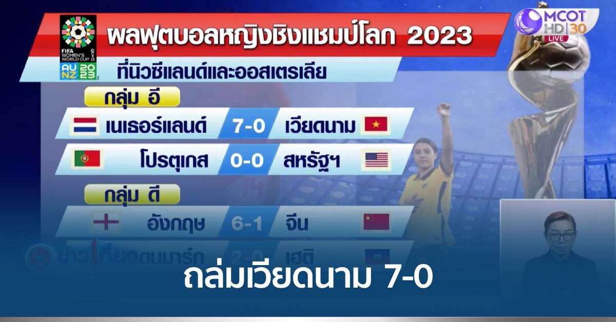 นิวซีแลนด์ 2 ส.ค.-นักเตะสาวเนเธอร์แลนด์ ถล่มเอาชนะ เวียดนาม 7-0 ส่วนอังกฤษ ถล่ม จีน 6-1 ในศึกฟุตบอลหญิงชิงแชมป์โลก 2023
