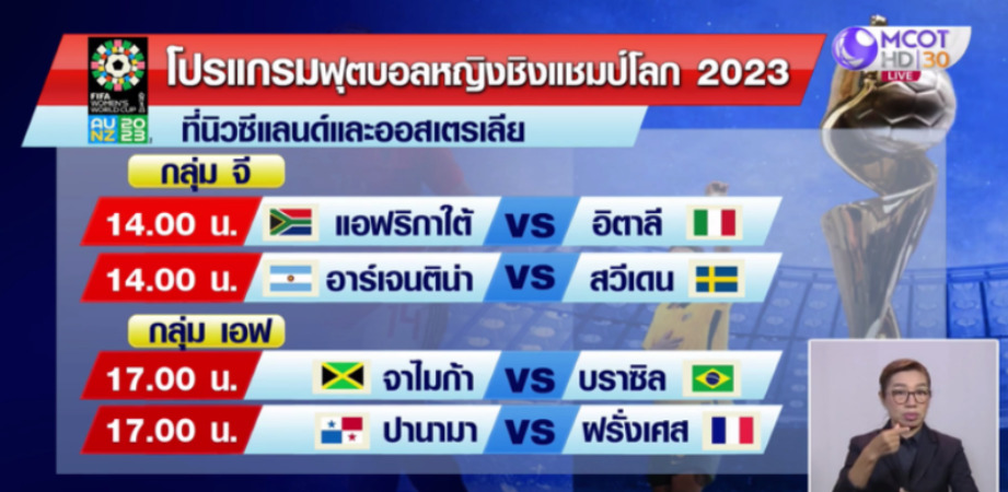 ส่วนโปรแกรมรอบแรกนัดสุดท้าย กลุ่มจี เตะพร้อมกันเวลา 14.00 น. แอฟริกาใต้-อิตาลี เวลา 14.00 น. อาร์เจนตินา-สวีเดน กลุ่ม เอฟ เตะพร้อมกัน เวลา 17.00 น. จาไมกา-บราซิล เวลา 17.00 น. ปานามา-ฝรั่งเศส.-สำนักข่าวไทย