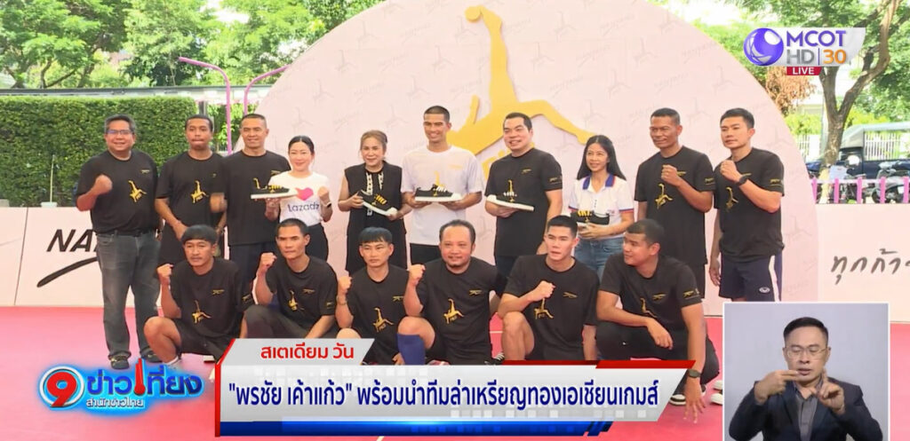 “เจ้าปุ้ย” พรชัย เค้าแก้ว นักกีฬาเซปักตะกร้อทีมชาติไทย เจ้าของสถิติคว้า 18 เหรียญทองจากซีเกมส์ 10 สมัย, 10 เหรียญทอง จากเอเชียนเกมส์ 5 สมัย และติดทีมชาติมาอย่างยาวนานกว่า 21 ปี กล่าวหลังร่วมงานเปิดตัวรองเท้านันยาง PK5 รุ่นลิมิเตด ที่จะผลิตและเปิดให้แฟนๆนักเซปักตะกร้อทั่วโลกได้จับจองกันเพียง 10,500 คู่ ก่อนนำทีมลุยศึกเอเชียนเกมส์ 2023 ที่เมืองหางโจว ประเทศจีน ระหว่างวันที่ 23 กันยายน- 8 ตุลาคมนี้ ระบุว่า ตอนนี้ทีมตะกร้อชายไทย พร้อมแล้ว 100% ที่จะเดินทางไปทำศึกเอเชียนเกมส์ เพราะเก็บตัวฝึกซ้อมกันมาตั้งแต่ช่วงต้นปี ทั้งยังผ่านการแข่งขันอย่างกีฬาซีเกมส์ ครั้งที่ 32 ที่กัมพูชา และศึกคิงส์คัพ ที่จังหวัดนครราชสีมา ช่วงเดือนกรกกฏาคม ที่ผ่านมา โดยเป้าหมายของทีมตะกร้อชายในเอเชียนเกมส์ คือการคว้าเหรีญทองจากทีมชุด และทีมเดี่ยว ให้ได้ทั้ง 2 เหรียญทอง