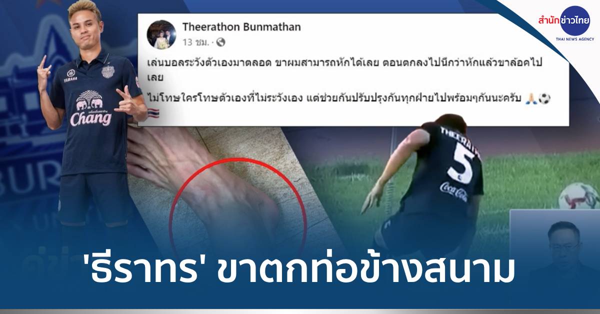 กทม. 13 ส.ค.-“ธีราทร บุญมาทัน” นักฟุตบอลทีมชาติไทยและดาวเตะบุรีรัมย์ ยูไนเต็ด โพสต์จังหวะได้ลูกเตะมุม เดินถอยตามปกติ แต่ขาซ้ายตกลงท่อระบายน้ำข้างสนาม โชคดีที่ไม่บาดเจ็บหนักแต่ หลังจากนั้นบวมเป่ง ด้านโซเชียลถกความปลอดภัยของสนาม.–สำนักข่าวไทย