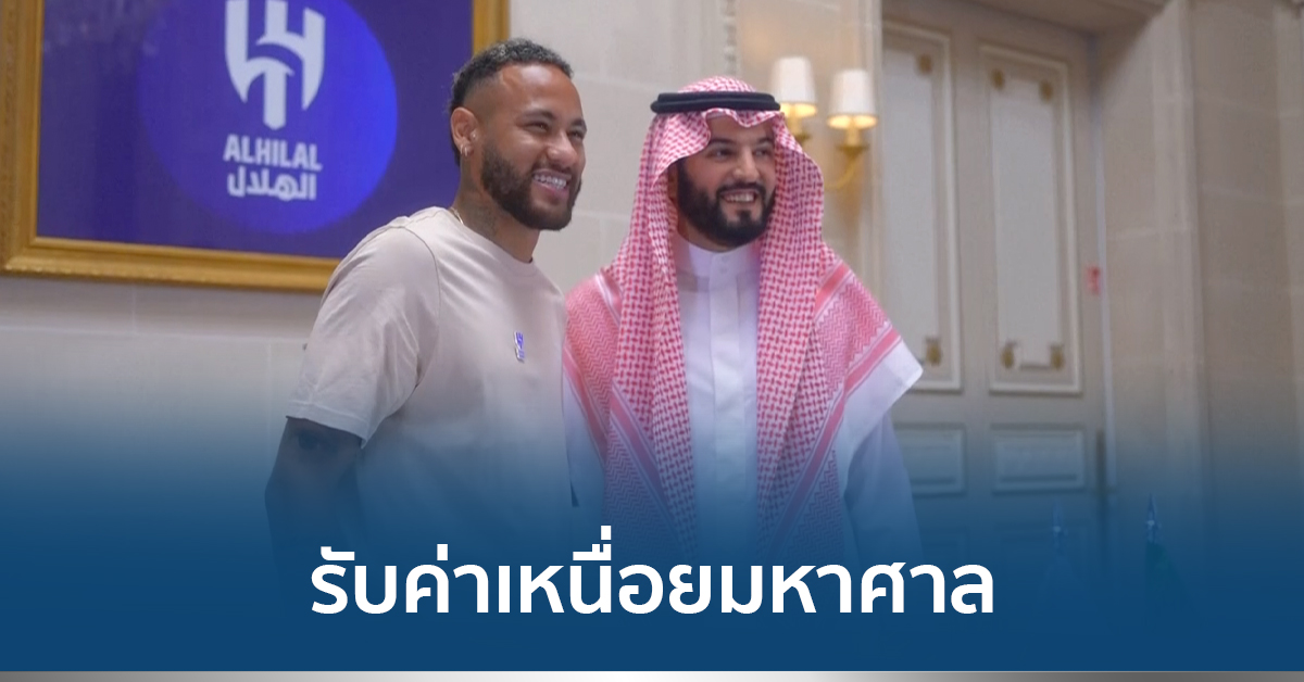 เนย์มาร์ หัวหอกทีมชาติบราซิล วัย 31 ปี ย้ายจาก ปารีส แซงต์ แชร์กแมง แชมป์ ลีก เอิง ฝรั่งเศส ไปเล่นให้กับ อัล ฮิลาล ในซาอุดีอาระเบียอย่างเป็นทางการแล้ว ด้วยค่าตัว 80 ล้านปอนด์ หรือประมาณ 3,520 ล้านบาท โดยเซ็นสัญญา 2 ปี รับค่าเหนื่อยรวมตลอดสัญญาสูงถึง 257 ล้านปอนด์ หรือราว 11,308 ล้านบาท