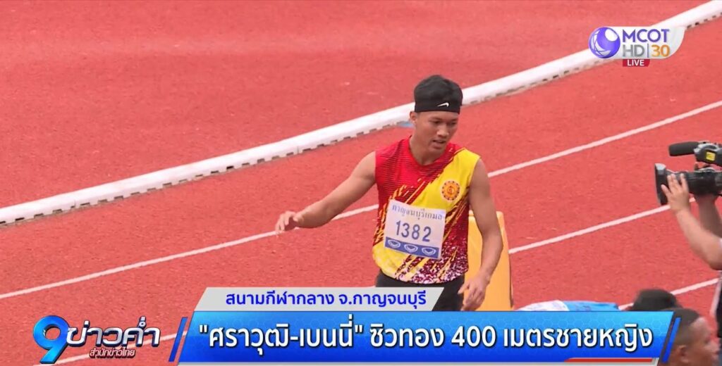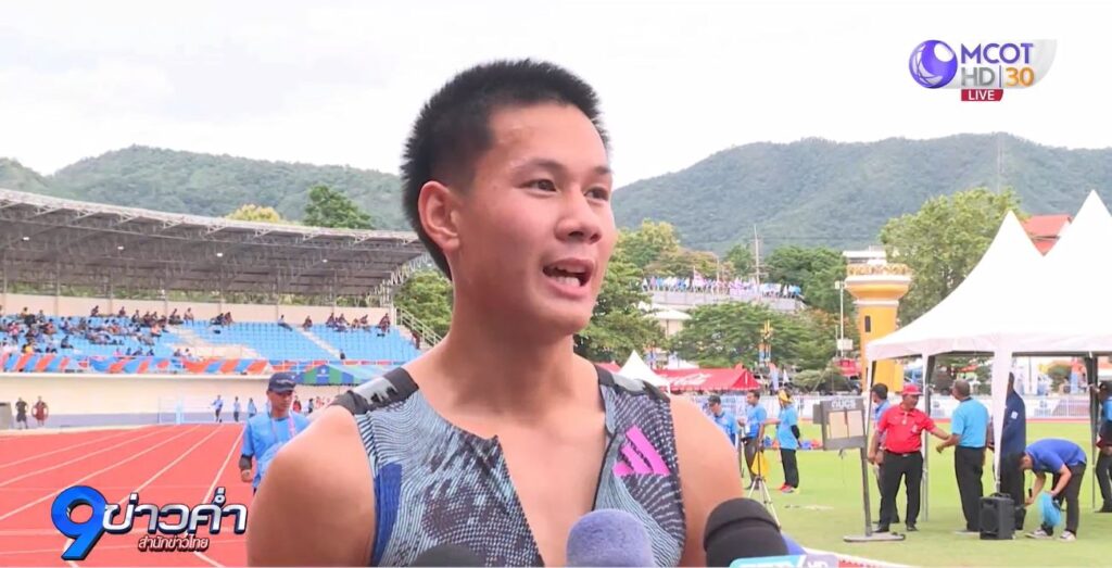 กาญจนบุรี 16 ส.ค. – “ไฟต์เตอร์ ณฐวรรธ” ปาดเข้าเส้นชัย คว้าเหรียญทองวิ่ง 100 เมตรชาย กีฬาแห่งชาติ ครั้งที่ 48 “กาญจนบุรีเกมส์” เผย มั่นใจมากขึ้น เตรียมลุยเอเชียนเกมส์