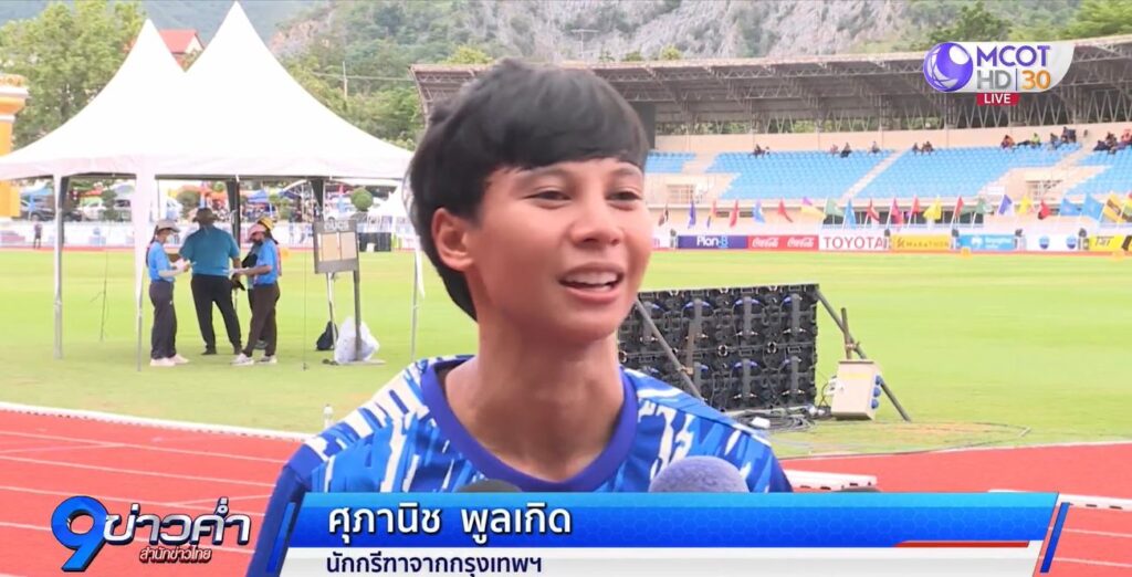 วิ่ง 100 เมตรหญิง “น่าน” ศุภานิช พูลเกิด ลมกรดทีมชาติไทย จากกรุงเทพฯ ดีกรีเหรียญเงินซีเกมส์ 2023 ในช่องวิ่งที่ 5 วิ่งในเสื้อสีฟ้าสปีดหนีคู่แข่งนำแบบม้วนเดียวจบ เข้าเส้นชัยเป็นคนแรก ทำสถิติ 11.66 วินาที ป้องกันแชมป์ได้สำเร็จ เหรียญเงิน เป็น อธิชา เพ็ชรกุล เพื่อนร่วมทีมชาติจากปทุมธานี 11.88 วินาที และเหรียญทองแดง สุภาวรรณ ธิปัตย์ จากสุราษฎร์ธานี สถิติ 11.93 วินาที หลังจบการแข่งขัน ศุภานิช เผยว่า สถิติที่ทำได้ในกาญจนบุรีเกมส์ถือว่าอยู่ในระดับมาตรฐาน