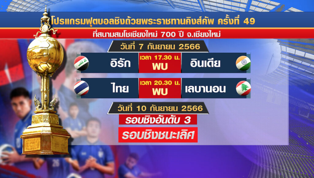 อบจ.เชียงใหม่ 17 ส.ค.- แข้งช้างศึก ชน เลบานอน ฟุตบอลชิงถ้วยพระราชทานคิงส์คัพ ครั้งที่ 49 “มาโน” หวังนำทีมเข้าชิงชนะเลิศ ส่วนยู23 ปี วันนี้ดวลแข้งเมียนมา ศึกชิงแชมป์อาเซียน