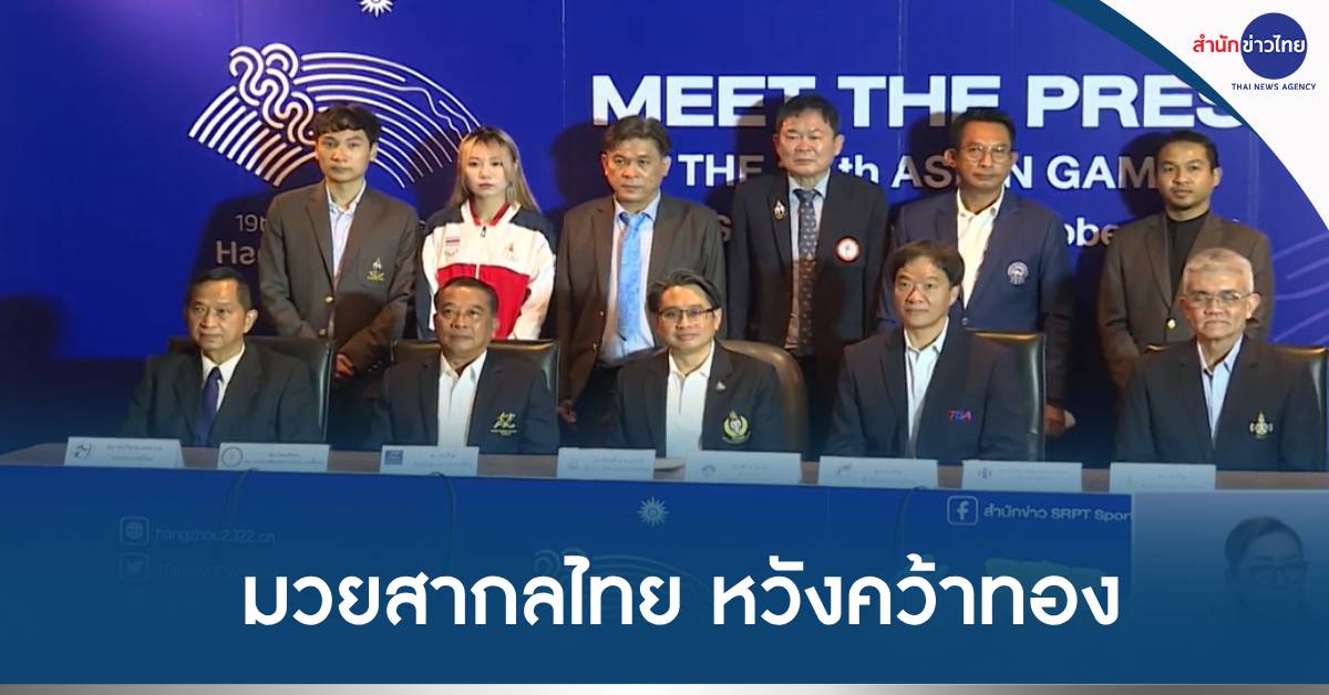 สมาคมนักข่าวช่างภาพกีฬาแห่งประเทศไทย จัดงานมีทเดอะเพรส กีฬาเอเชียนเกมส์ ครั้งที่ 19 ระหว่างวันที่ 23 กันยายน ถึง 8 ตุลาคมนี้ ที่นครหางโจว สาธารณรัฐประชาชนจีน ซึ่งมีทเดอะเพรสครั้งที่ 4 เมื่อวานนี้มีผู้แทนจาก 6 สมาคมกีฬาเข้าร่วม โดยมวยสากล เป็นเพียงสมาคมเดียวที่มั่นใจว่าจะคว้าเหรียญทองได้จากมวยหญิง เนื่องจากเอเชียนเกมส์ครั้งนี้ จะเป็นเก็บคะแนนและคัดเลือกนักชกไปโอลิมปิกเกมส์ 2024 ที่ฝรั่งเศสด้วย ซึ่งตอนนี้ทีมมวยหญิงไทย ได้เดินทางไปเก็บตัวฝึกซ้อมที่คาซัคสถาน ส่วนทีมชายจะเดินทางไปฝึกซ้อมที่อุซเบกิสถานในวันนี้ (22ส.ค.) ทำให้สมาคมตั้งเป้า คว้า 1 เหรียญทอง 1 เหรียญเงิน 2 เหรียญทองแดง