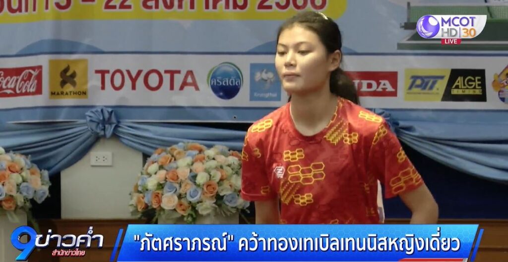 เทเบิลเทนนิส บุคคลหญิง รอบชิงชนะเลิศ ที่โรงเรียนเฉลิมพระเกียรติฯ “ไอซ์” ภัตศราภรณ์ วงละคร เยาวชนทีมชาติไทย วัย 16 ปี เจ้าของเหรียญทองชิงแชมป์เอเชียรุ่น 15 ปี เมื่อปีที่แล้ว และเป็นแชมป์เก่า จากนครปฐม ยังโชว์ฟอร์มเยี่ยม พลิกเอาชนะ “บัว” จิณห์นิภา เสวตรบุตร นักตบลูกเด้งทีมชาติไทยรุ่นพี่ ชุดเอเชียนเกมส์ ครั้งที่ 19 ที่จีน ในเดือน ก.ย.นี้ ไปได้ 4-0 เกม 11-4, 11-9, 11-6 และ 12-10 ป้องกันแชมป์ไว้ได้อีกสมัย
