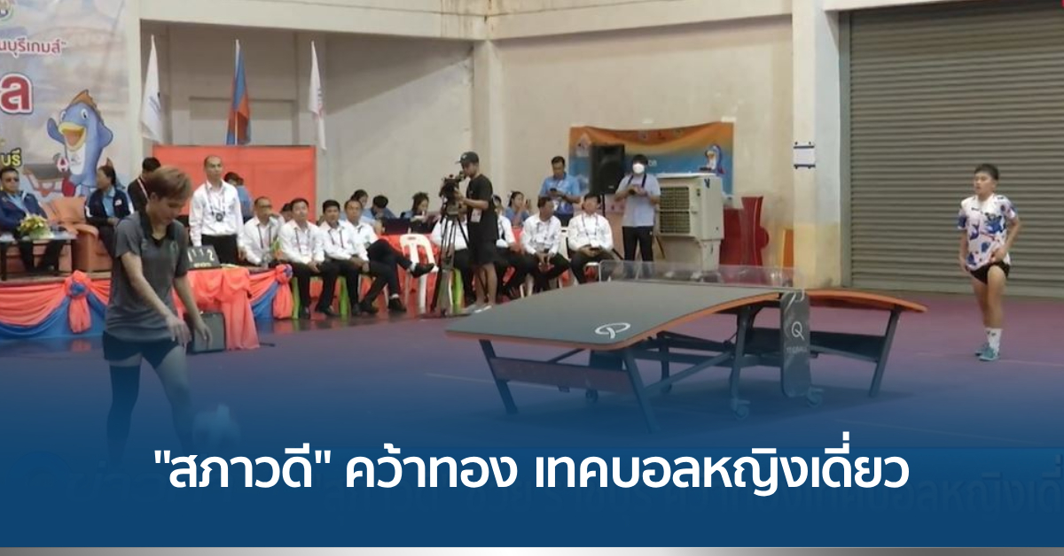 สีสันกาญจนบุรีเกมส์ วันนี้ไปชมการดีใจด้วยการตีลังกา 1 รอบ ของ พรเทพ วาปีศิริ นักกีฬาเทคบอลจากปทุมธานี หลังจากเอาชนะคู่ต่อสู้ได้ในรอบรอง และรอบชิงชนะเลิศ