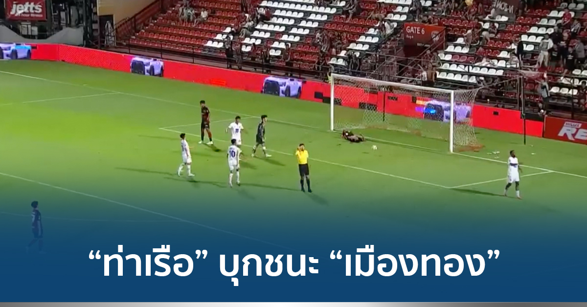 การแข่งขันฟุตบอลรีโว่ ไทยลีก 2023/24 เมื่อวานนี้เกมมันเดย์ไนท์ ที่สนามธันเดอร์โดม สเตเดียม “กิเลนผยอง” เมืองทอง ยูไนเต็ด อันดับ 13 เปิดบ้านพบ การท่าเรือ เอฟซี อันดับ 6 เริ่มเกมมา 10 นาที การท่าเรือ เขึ้นนำ 1-0 จาก บาร์รอส ทาร์เดลี แต่ครึ่งหลังนาที 55 เจ้าบ้านได้จุดโทษ วิลเลียน ป็อปป์ สังหารยิงไม่พลาด เมืองทอง ตีเสมอ 1-1 แต่จากนั้นนาทีที่ 66 การท่าเรือ ขึ้นนำอีกครั้งจาก แฮมิลตัน โซอาเรส ก่อนที่ในช่วงทดเวลาเจ็บนาทีที่ 90+1 ธีรศักดิ์ เผยพิมาย มายิงปิดท้ายให้ท่าเรือชนะไป 3-1 เก็บ 3 คะแนนกลับบ้าน ทำให้แข่ง 3 นัด มี 7 คะแนน ขยับขึ้นมารั้งรองจ่าฝูง ส่วนเมืองทองอยู่ที่ 14 มี 1 แต้ม