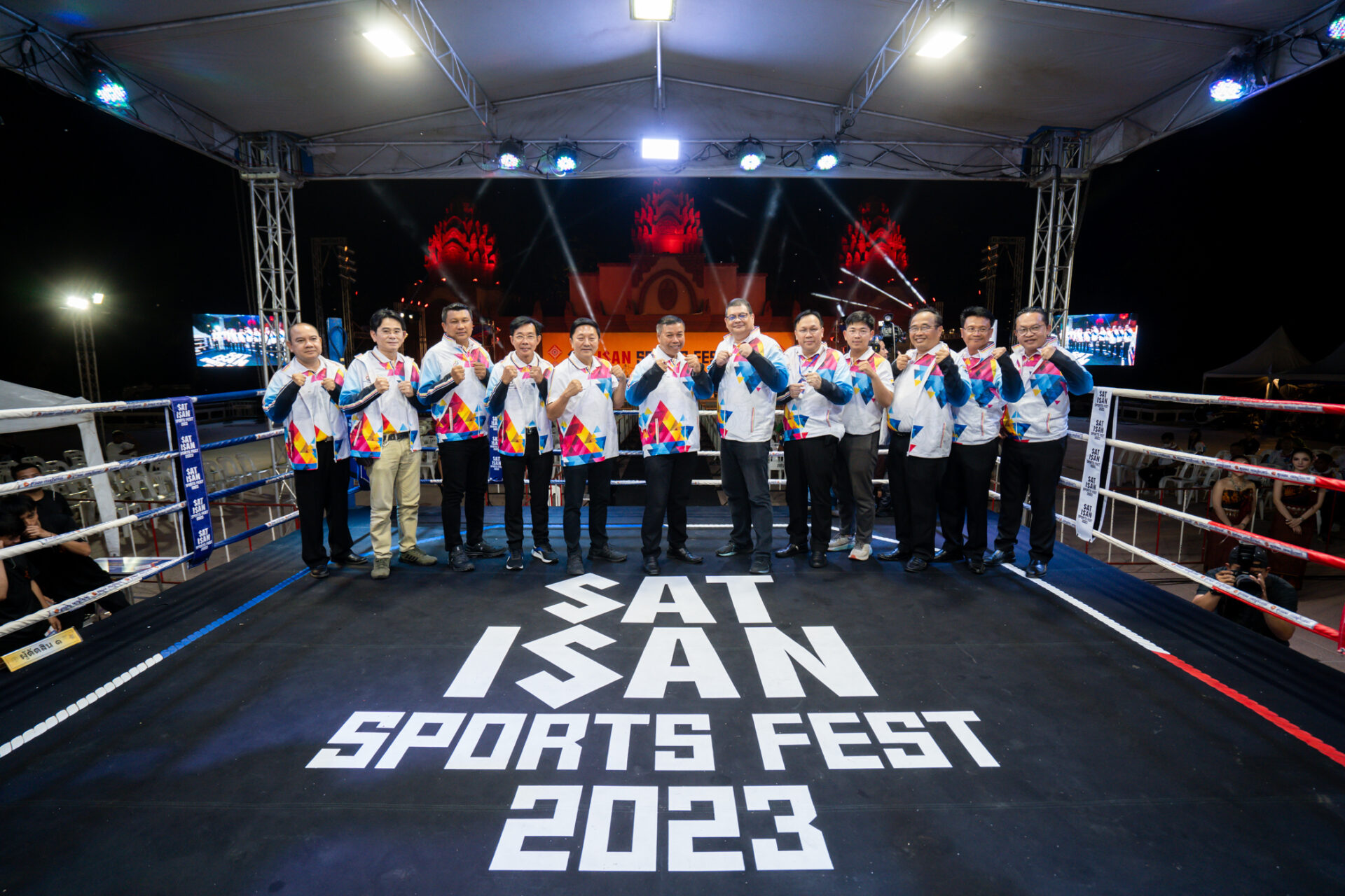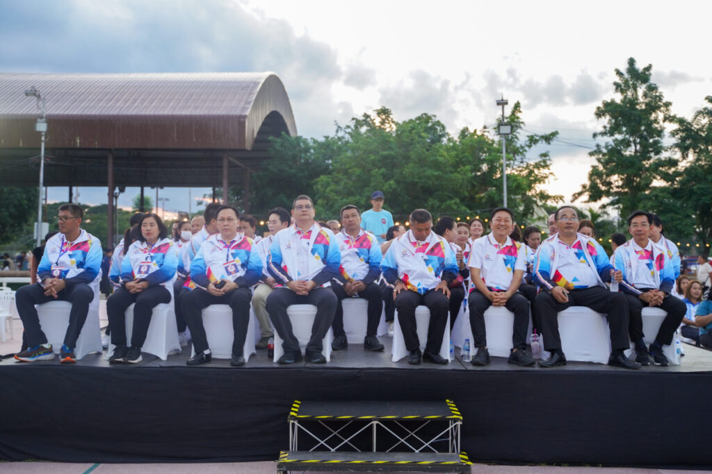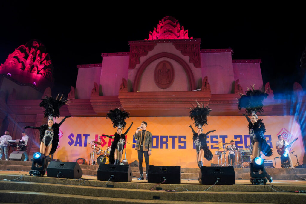 นายสรสาสน์ สีเพ็ง รองผู้ว่าราชการจังหวัดสุรินทร์ พร้อมด้วย นพ.มีชัย อินวู๊ด ที่ปรึกษาระดับ 10 การกีฬาแห่งประเทศไทย (กกท.) และ นายก้องภพ โพธิสุวรรณ ผู้อำนวยการฝ่ายกีฬาภูมิภาค การกีฬาแห่งประเทศไทย ร่วมพิธีเปิดการแข่งขันกีฬารายการ SAT ISAN SPORTS FEST 2023 ที่ลานเวทีการแสดงปราสาทขอม (สวนช้าง) จ.สุรินทร์ เมื่อวันที่ 1 กันยายน 2566