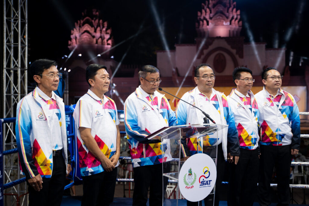 นายสรสาสน์ สีเพ็ง รองผู้ว่าราชการจังหวัดสุรินทร์ กล่าวว่า ในนามจังหวัดสุรินทร์รู้สึกเป็นเกียรติอย่างยิ่งที่ได้มีโอกาสต้อนรับคณะผู้บริหารการกีฬาแห่งประเทศไทย ผู้บริหารสมาคมกีฬา นักกีฬา กรรมการผู้ตัดสิน ผู้บริหารส่วนราชการ ภาคเอกชน ในจ.สุรินทร์ ตลอดจนสื่อมวลชน ที่เข้าร่วมงานการจัดการแข่งขันกีฬาเพื่อเชื่อมโยงการท่องเที่ยว เพื่อกระตุ้นเศรษฐกิจการขับเคลื่อนไทย ไปด้วยกัน ภายใต้โมเดลเศรษฐกิจสู่การพัฒนาที่ยั่งยืน หรือ Sports Tourism Economic Triangle Festival 2023 ที่มีแผนการลงพื้นที่ทั้งสิ้น 3 จังหวัด ประกอบด้วย จ.บุรีรัมย์ จ.สุรินทร์ และ จ.ชัยภูมิ ในรายการ SAT ISAN SPORTS FEST 2023