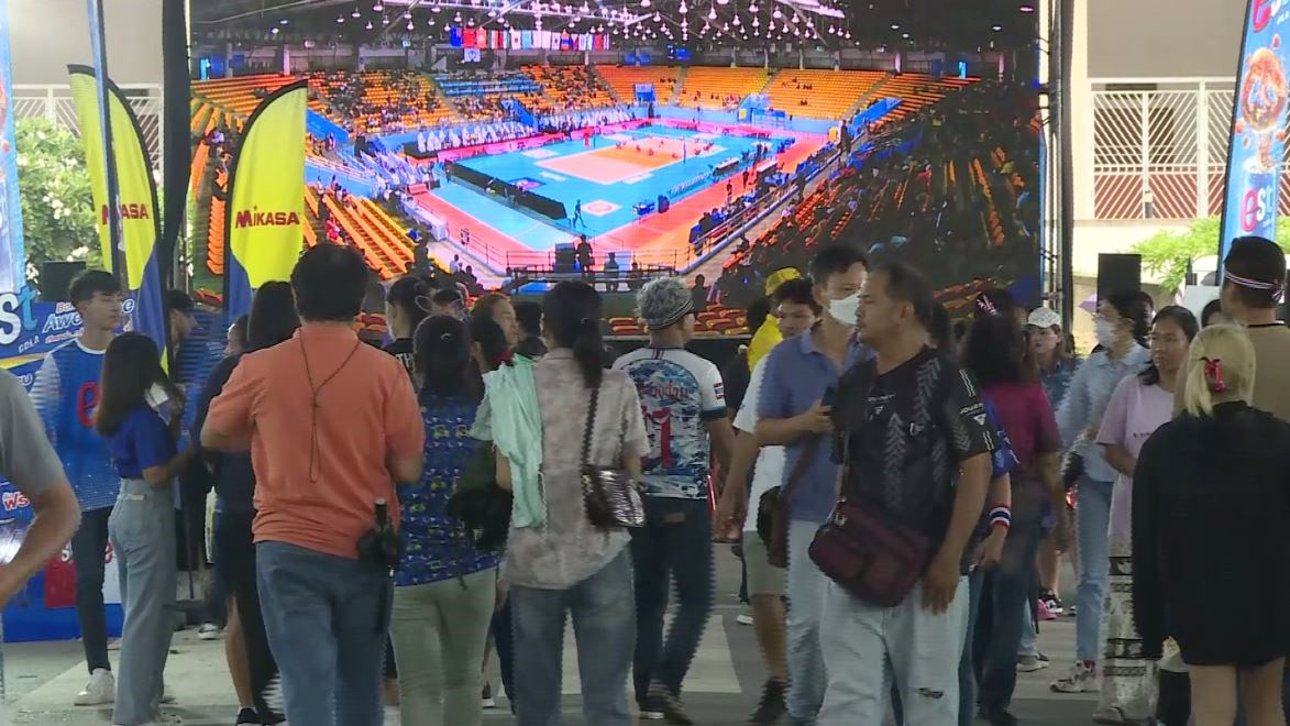 บรรยากาศก่อนเกม วอลเลย์บอลหญิงชิงแชมป์เอเชีย ครั้งที่ 22 ประจำปี 2566 ที่โคราช ชาติชาย ฮอลล์ เกมรอบ 2 นัดที่ 2 กลุ่มอี นักตบลูกยางสาวไทย ดีกรีแชมป์เอเชีย 2 สมัย ปี 2009 และปี 2013 ทีมอันดับที่ 14 ของโลก ลงสนามแย่งแชมป์กลุ่มกับ เวียดนาม ทีมอันดับ 39 ของโลก แม้จะมีฝนตกลงมาเล็กน้อย แต่บรรดาแฟนวอลเลย์บอลชาวโคราชและจังหวัดใกล้เคียงก็เดินทางมาชมการแข่งขัน ร่วมกิจกรรมเล่นเกม ซื้อเสื้อทีมชาติไทย และเพ้นท์หน้าลายธงชาติ เพื่อสร้างสีสันการเชียร์