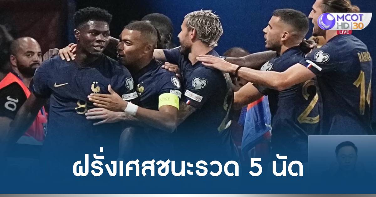 ฝรั่งเศส 8 ก.ย.-ฝรั่งเศส ชนะรวด 5 นัดในฟุตบอลยูโร 2024 รอบคัดเลือก ส่วน โมฮาเหม็ด ซาล่าห์ กองหน้าลิเวอร์พูลไม่ได้ย้ายออกจากทีม หลังตลาดนักเตะในลีกซาอุฯ ปิดตัวลงแล้ว