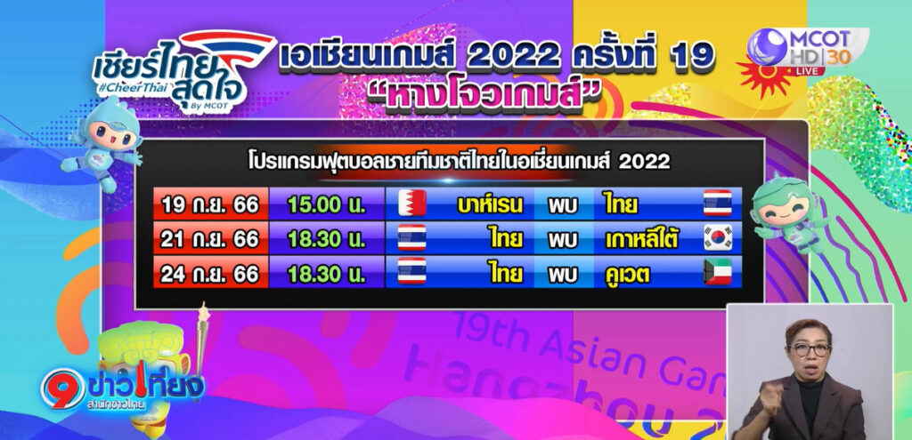 21 ก.ย. 66 เวลา 18.30 น. ไทย พบ เกาหลีใต้