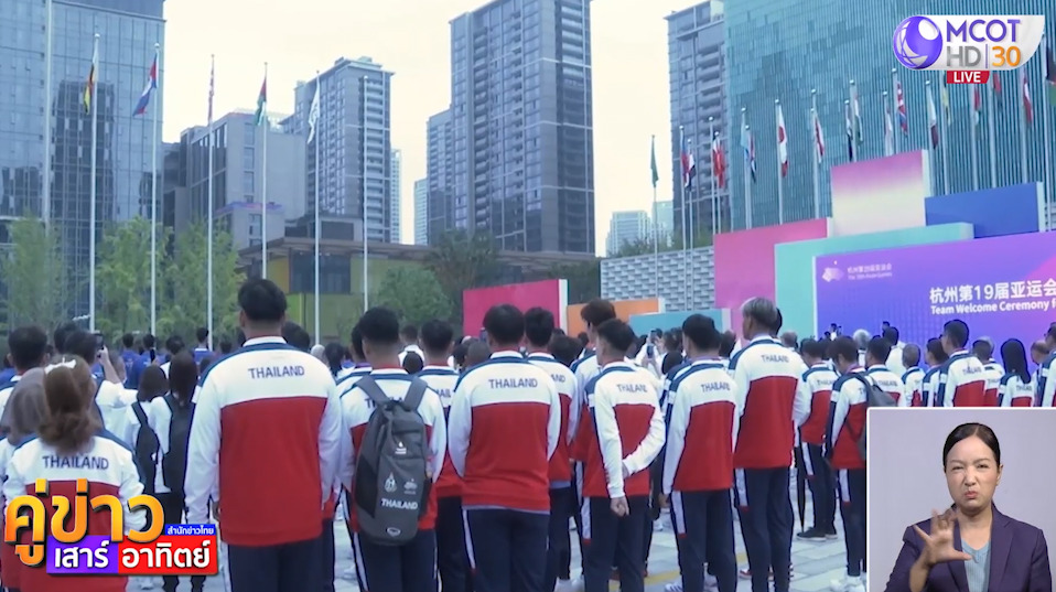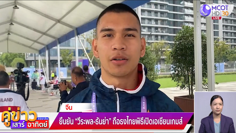 จีน 23 ก.ย.-“วีระพล-ธันย่า” 2 นักกีฬาไทย ที่ทำหน้าที่ถือธงไตรรงค์นำทัพนักกีฬาไทยเข้าสู่สนามในพิธีเปิดเอเชียนเกมส์ 2022 ค่ำวันนี้ ที่เมืองหางโจว โดยมีประธานาธิบดี สี จิ้นผิง เป็นประธานในพิธี