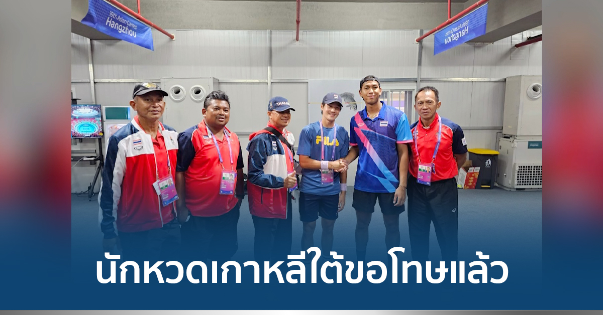 จีน 26 ก.ย.- “ควอน ซุนวู” นักเทนนิสเกาหลีใต้ ขอโทษ “กษิดิศ สำเร็จ” นักเทนนิสไทย หลังปฏิเสธการจับมือหลังในแมตช์ที่พ่าย และพังแร็กเก็ตตัวเองเมื่อวานนี้
