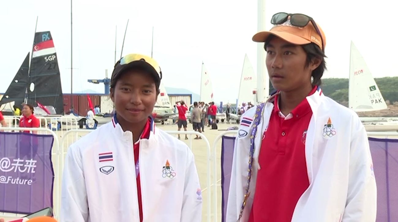 จีน 26 ก.ย. – ม.ล.เวฆา ภาณุพันธ์ และ นพภัสสร ขุนบุญจันทร์ คว้า 2 เหรียญทองกีฬาเรือใบ เอเชียนเกมส์ ส่วน ศิริพร แก้วดวงงาม นักโต้คลื่นสาวไทย คว้าเหรียญทองวินเซิร์ฟ