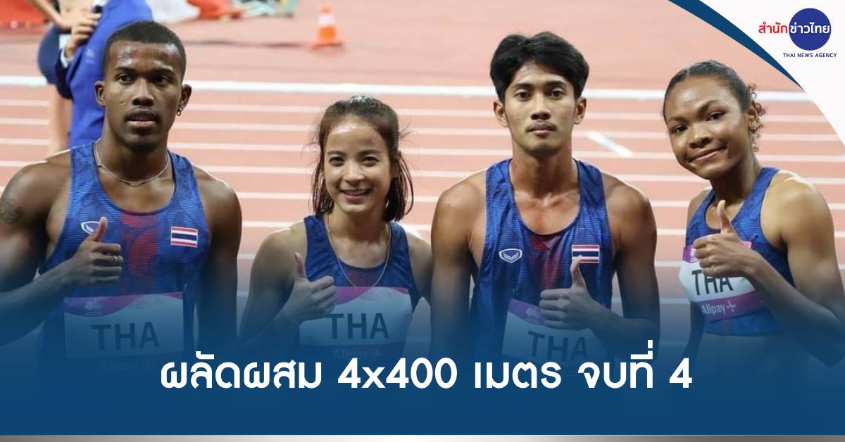 จีน 3 ต.ค.-ทีมวิ่งผลัดผสม 4×400 เมตร ไทย เข้าเส้นชัยเป็นอันดับ 4 ด้วยเวลา 3 นาที 26.81 วินาที พลาดเหรียญทองแดงอย่างน่าเสียดาย