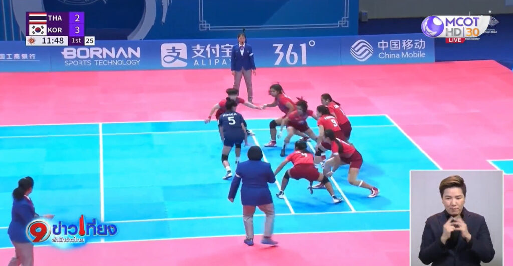 ด้าน การแข่งขันกาบัดดี้ ที่เสี่ยวซาน กวาลี่ สปอร์ตส์ เซนเตอร์ ประเภททีมหญิงไทย รองแชมป์เอเชียนเกมส์ เมื่อปี 2010 และเหรียญทองแดง 2 สมัย ในปี 2014 กับ 2018 อยู่สายเอ ร่วมกับ อินเดีย แชมป์ 2 สมัย ไต้หวัน และเกาหลีใต้ โดยทำการแข่งขันแบบพบกันหมด เพื่อคัดอันดับ 1 และ 2 ของสาย เข้าไปแข่งขันในรอบรองชนะเลิศ สำหรับเกมแรก สาวไทยในชุดสีแดง ประเดิมลงสนามพบกับทีมชาติเกาหลีใต้ และเอาชนะไปได้ 43-23 เกมต่อไป ไทย จะลงสนามพบ ไต้หวัน วันนี้ เวลา 15.50 น.-สำนักข่าวไทย