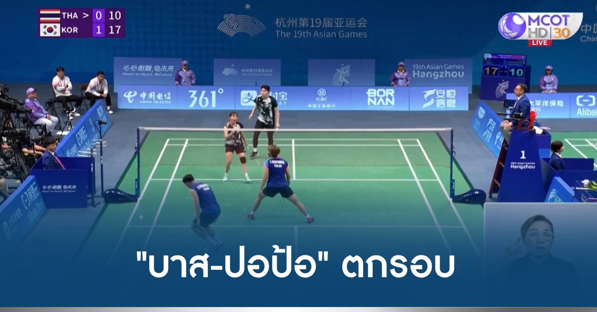 แบดมินตัน คู่ผสม รอบ 16 ทีมสุดท้าย ที่บินเจียง ยิมเนเซียม บีดีเอ็ม เมืองหางโจว ของจีน ในศึกเอเชียนเกมส์ 2022 เมื่อช่วงเช้าที่ผ่านมา “บาส” เดชาพล พัววนานุเคราะห์ กับ “ปอป้อ” ทรัพย์สิรี แต้รัตนชัย คู่มือ 4 ของโลกชาวไทย เสื้อสีน้ำเงิน ที่ได้บายในรอบแรก พบกับ โซ ซอง แจ กับ แซ ยู จอง ซึ่งเป็นคู่มือวาง 2 ของโลกจากเกาหลีใต้ ปรากฏว่าเกมนี้ “บาส” กับ “ปอป้อ” เจอคู่ของเกาหลีใต้ ที่เปิดเกมบุกตีเข้าใส่ได้อย่างรวดเร็ว จนทำให้ บาส-ปอป้อ ต้องตั้งรับเป็นหลัก และพยายามต่อกรกับคู่เกาหลีใต้ไป 47 นาที ก่อนจะแพ้ไป 2 เกมรวด 13-21 และ 11-21 ทำให้ตกรอบไปอย่างน่าเสียดาย