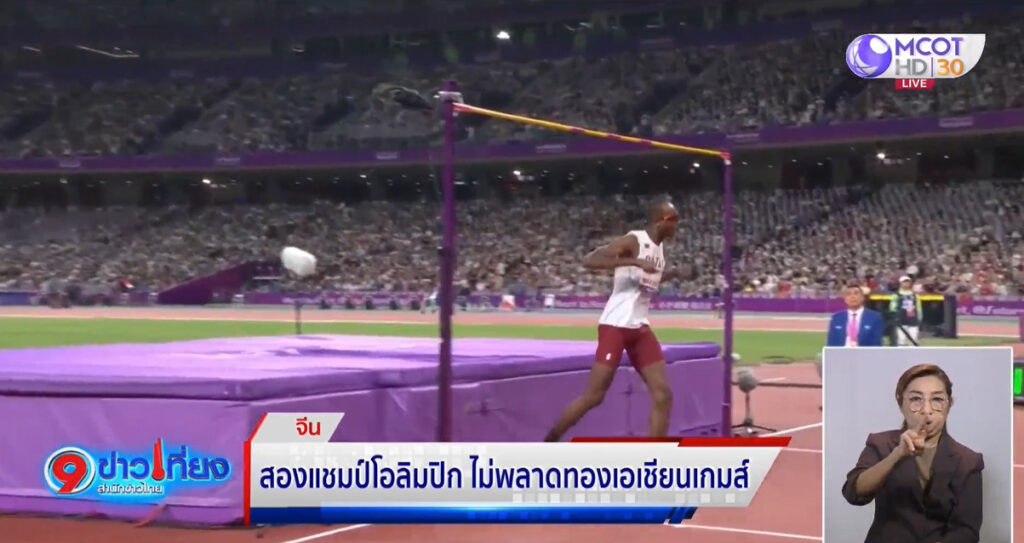 ด้านการแข่งขันกระโดดสูงชาย รอบชิงชนะเลิศ มูตาซ์ บาร์ชิม นักกระโดดสูงบาห์เรน เจ้าของเหรียญทองโอลิมปิกเกมส์ครั้งล่าสุด กระโดดทำความสูงได้ที่ 2.35 เมตร สร้างสถิติเอเชียนเกมส์ขึ้นมาใหม่ เฉือนเหรียญเงินคือ วู ซา ฮยอก จากเกาหลีใต้ ที่ทำได้ 2.33 เมตรไปนิดเดียว