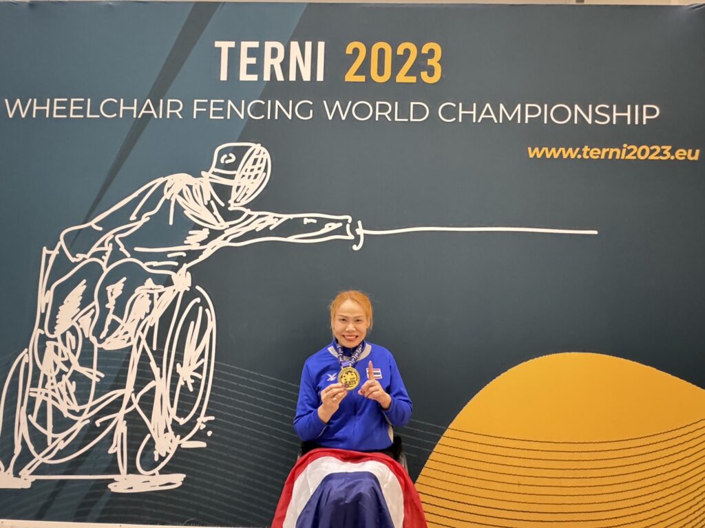 การแข่งขันวีลแชร์ฟันดาบรายการ ไอวาส วีลแชร์เฟนชิ่ง 2023 เวิลด์แชมเปียนส์ ที่เมือง แตร์นี ประเทศอิตาลี เมื่อวันที่ 5 ต.ค. ที่ผ่านมา (ตามเวลาท้องถิ่น) รายการนี้มีตัวคูณคะแนนสะสมสูงถึง 2.5 เป็นการแข่งขันแบบที่ไม่มีรอบพลู นักกีฬาจะแข่งกันที่ 15 คะแนนตั้งแต่รอบแรก และยังเป็นรายการอุ่นเครื่องก่อนเดินทางไปแข่งขันเอเชี่ยนพาราเกมส์ที่จะถึงนี้