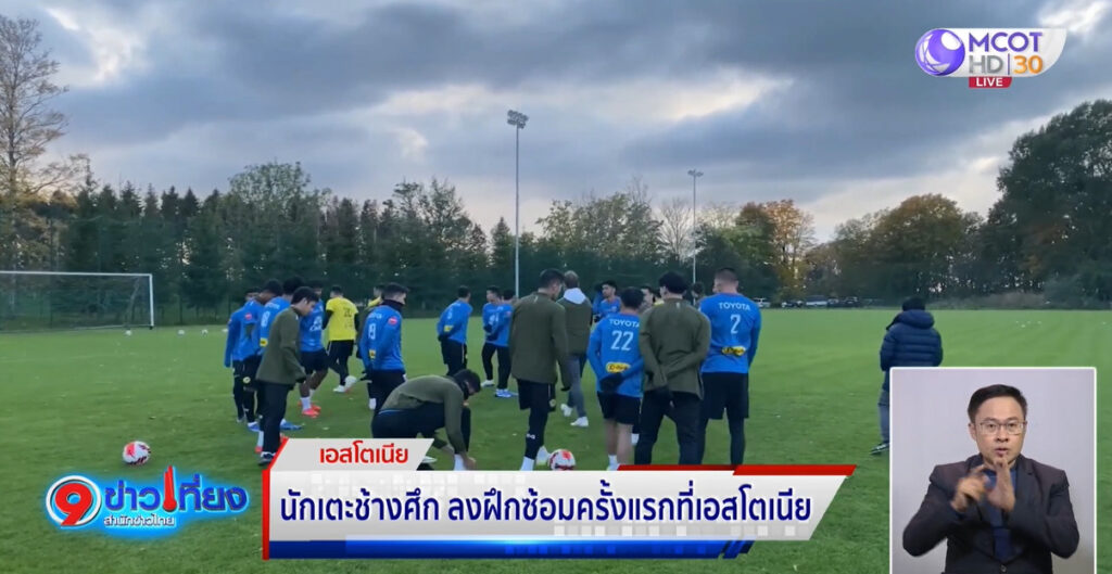 เอสโตเนีย 16 ต.ค.-มาโน่ โพลกิ้ง นำนักเตะช้างศึกลงฝึกซ้อมครั้งแรกที่เอสโตเนีย ในการปรับแท็กติก เพื่อเตรียมความพร้อม ก่อนอุ่นเครื่องนัดที่สอง กับ เอสโตเนีย คืนวันพรุ่งนี้