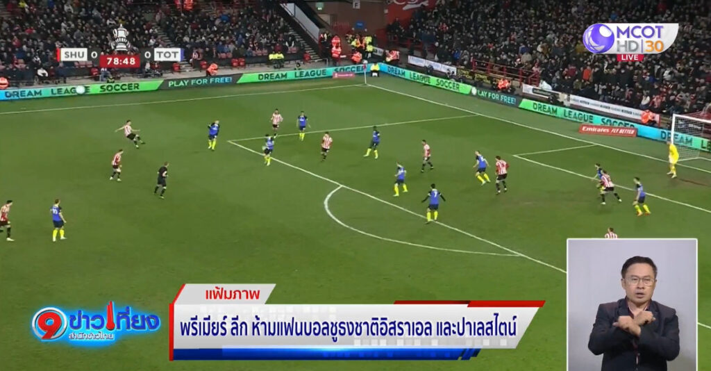 พรีเมียร์ลีก อังกฤษ สั่งห้ามแฟนบอลนำธงชาติอิสราเอล และปาเลสไตน์ เข้าไปชูในสนาม และไม่อนุญาตให้ใส่เสื้อฟุตบอลทีมอื่นๆ ที่ไม่ได้เป็นคู่แข่งขันในเกมนั้นๆ เพื่อป้องกันเหตุทะเลาะวิวาทจากการขัดแย้งต่างๆ โดยเอฟเอ เริ่มใช้ข้อบังคับนี้ตั้งแต่เกมทีมชาติในปฏิทินฟีฟ่าเดย์ที่ผ่านมา ทั้งเกมอุ่นเครื่องพบ ออสเตรเลีย รวมถึงเกมยูโร 2024 รอบคัดเลือก พบ อิตาลี โดยฟุตบอลอาชีพทุกระดับของอังกฤษ จะมีการยืนไว้อาลัยให้แก่ผู้เสียชีวิตจากการปะทะกันระหว่างกลุ่มฮามาส กับอิสราเอล ในช่วงสุดสัปดาห์นี้ด้วย