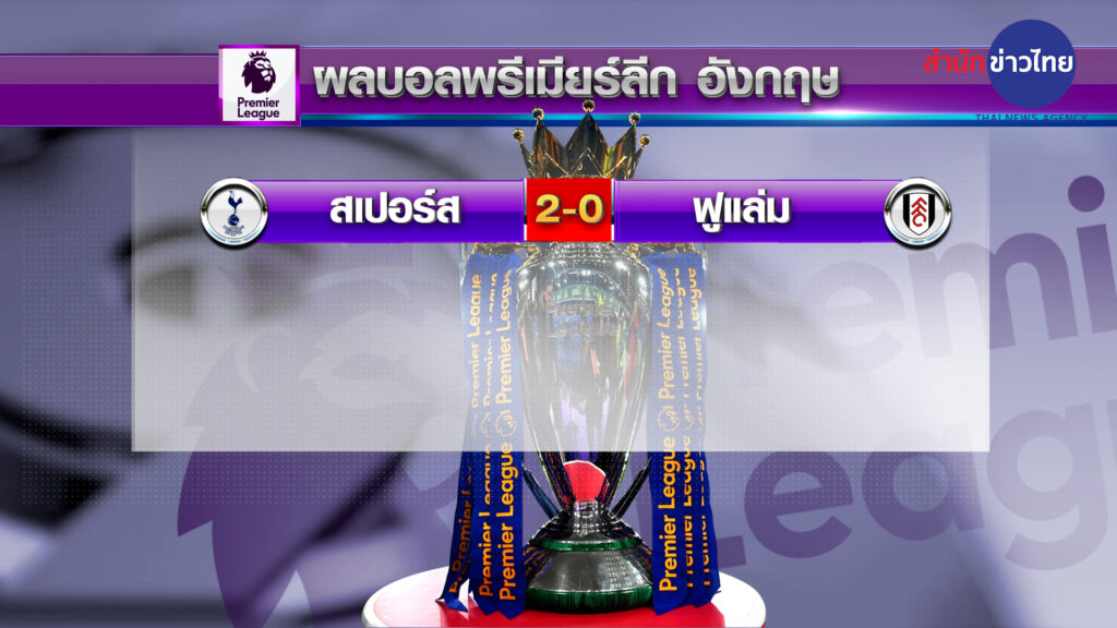 ผลฟุตบอลพรีเมียร์ลีก อังกฤษ เกมมันเดย์ไนน์ “ศึกลอนดอนดาร์บี้” เมื่อคืนที่ผ่านมา “ไก่เดือยทอง” ทอตแนม ฮอตสเปอร์ เปิดสนามทอตแนม ฮอตสเปอร์ สเตเดียม เอาชนะ “เจ้าสัวน้อย” ฟูแล่ม 2-0 ได้ประตูจากกัปตัน ซน ฮึง-มิน นาทีที่ 36 และ เจมส์ แมดดิสัน นาทีที่ 54 ช่วยให้ สเปอร์ส เก็บเพิ่มเป็น 23 คะแนน จาก 9 นัด ขยับขึ้นไปนำจ่าฝูง ทำแต้มทิ้งห่าง แมนฯ ซิตี้ กับ อาร์เซนอล ที่หล่นไปรั้งอันดับ 2 และ อันดับ 3 ทีมละ 2 แต้ม