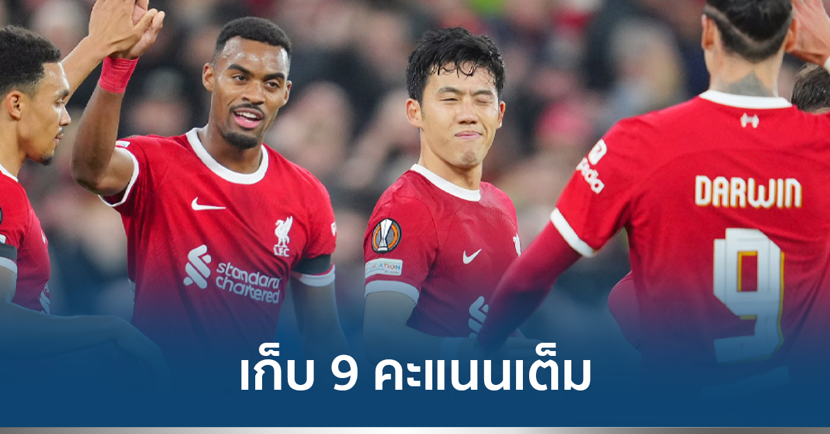 ผลฟุตบอล ยูฟ่า ยูโรปาลีก ฤดูกาล 2023-2024 รอบแบ่งกลุ่ม กลุ่มอี “หงส์แดง” ลิเวอร์พูล ที่เก็บชัยชนะมา 2 นัดรวด เปิดสนามแอนฟิลด์ ถล่มเอาชนะ ตูลูส จากฝรั่งเศส ที่มี 4 คะแนน 5-1 โดยทีมหงส์แดง ได้ประตูจากดีโอโก โชตา นาทีที่ 9, วาตารุ เอ็นโด นาทีที่ 30, ดาร์วิน นูนเญซ นาทีที่ 34, ไรอัน กราเฟนแบร์ก นาทีที่ 65 และ โมฮาเหม็ด ซาลาห์ นาทีที่ 90+3 ช่วยให้ลิเวอร์พูล เก็บเพิ่มเป็น 9 คะแนนเต็ม จาก 3 นัด นำโด่งเป็นจ่าฝูงต่อไป ส่วน ตูลูส มี 4 แต้มเท่าเดิม อยู่อันดับ 3
