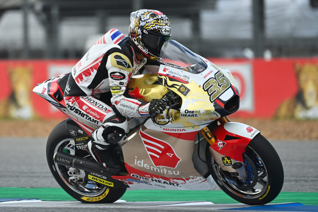 ส่วนนักบิดดาวรุ่งชาวไทยที่ลงบิดด้วยสิทธิ์ไวลด์การ์ดในรุ่น โมโตทรี เวิลด์ แชมเปี้ยนชิพ ปรากฏว่า “ไอเดีย” กฤตภัทร เขื่อนคำ จาก ยามาฮ่า ไทยแลนด์ เรซซิ่ง – โบเอ บิดเข้าป้ายอันดับ 27 ตามด้วย “ก๊องส์” ธัชกร บัวศรี จาก ฮอนด้า ทีม เอเชีย ในอันดับ 28