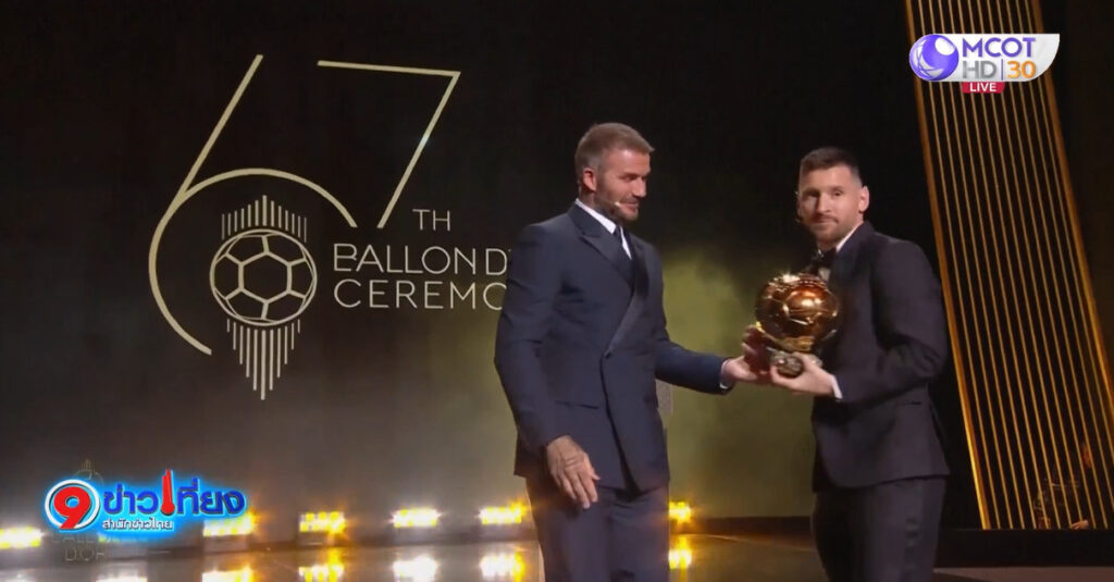 เมสซี่ แม้จะทิ้งฟุตบอลระดับท็อปของยุโรป แต่ก็ยังทำผลงานได้ดีกับทีมชาติ จนกลับมาได้รับรางวัลบัลลงดอร์อีกครั้ง หลังจากพลาดรางวัลไปเมื่อปี 2022 ซึ่งครั้งนี้ เมสซี เอาชนะเออร์ลิ่ง ฮาแลนด์ กองหน้าแมนเชสเตอร์ ซิตี้ และคิลิยัน เอ็มบัปเป้ อดีตเพื่อนร่วมทีมเปแอสเช. โดยรางวัลบัลลงดอร์ ถือเป็นครั้งแรกที่ผู้เล่นจากเมเจอร์ลีกซอคเกอร์ได้รับการยอมรับ เมสซี ได้รับถ้วยรางวัลจากเดวิด เบ็คแฮม อดีตสตาร์แมนเชสเตอร์ ยูไนเต็ด ซึ่งเป็นหนึ่งในเจ้าของสโมสรใหม่ของเขา