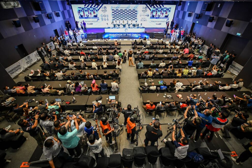 เมื่อวันที่ 1 พฤศจิกายน 2566 ณ ห้องประชุม Convention hall อาคาร TOYOTA ALIVE นางสาวสุดาวรรณ หวังศุภกิจโกศล รัฐมนตรีว่าการกระทรวงการท่องเที่ยวและกีฬา มอบหมายให้ นายณณัฏฐ์ หงษ์ชูเวช ที่ปรึกษารัฐมนตรีว่าการกระทรวงการท่องเที่ยวและกีฬา ร่วมแถลงข่าวความพร้อมในการจัดการแข่งขันวิ่งมาราธอนส่งเสริมการท่องเที่ยวระดับโลก รายการ “อะเมซิ่ง ไทยแลนด์ มาราธอน แบงค็อก พรีเซ็นต์ บาย โตโยต้า” ครั้งที่ 6 (Amazing Marathon Bangkok 2023 presented by TOYOTA) หรือ “วิ่งผ่าเมือง”