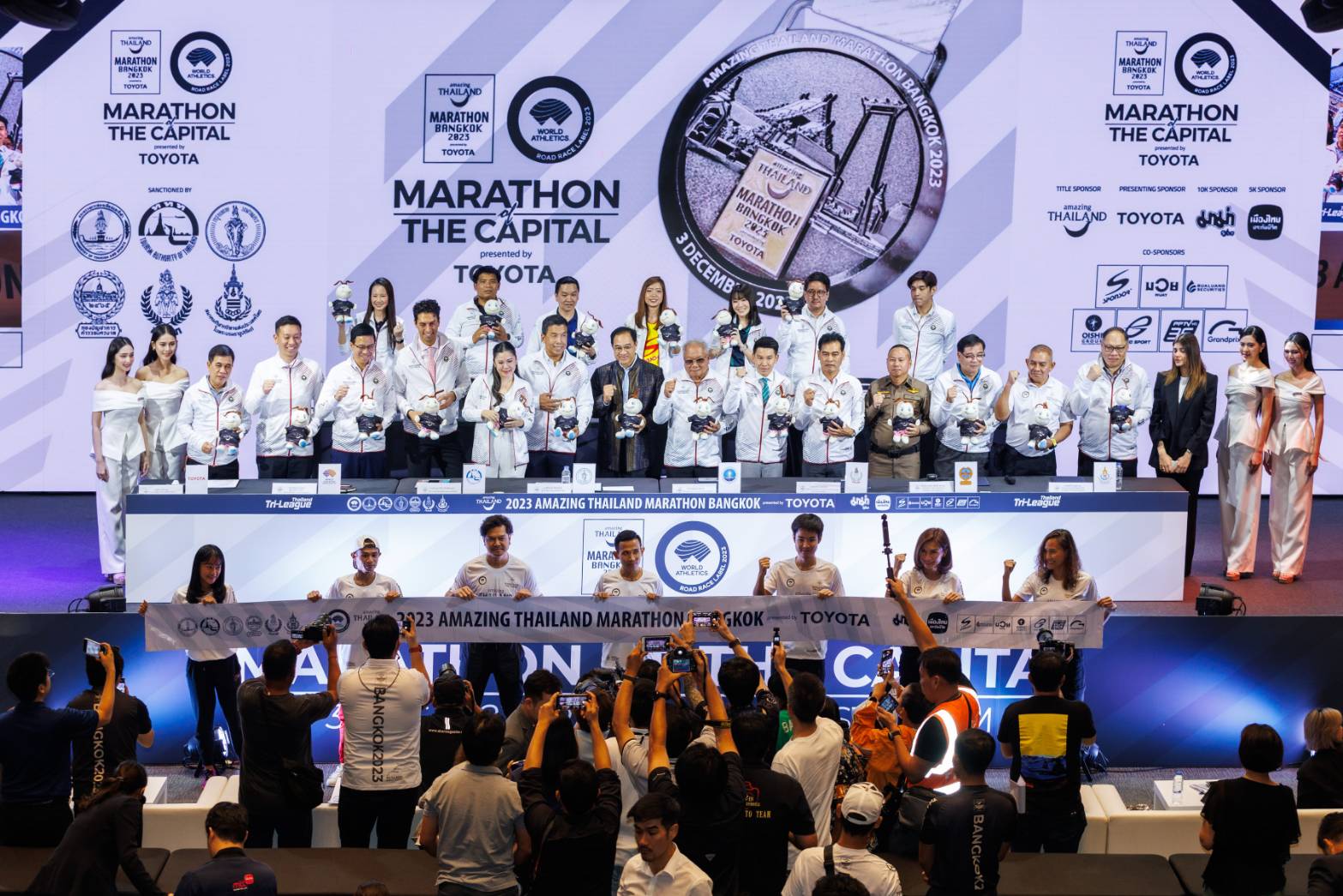 โดยได้รับเกียรติจาก นางสาวฐาปนีย์ เกียรติไพบูลย์ ผู้ว่าการการท่องเที่ยวแห่งประเทศไทย (ททท.), นายชัชชาติ สิทธิพันธุ์ ผู้ว่าราชการกรุงเทพมหานคร, มร.อเลสซิโอ พุนซี ผู้อำนวยการอาวุโสสมาคมกรีฑาโลก (World Athletics), นายอภิชัย ฉัตรเฉลิมกิจ รองผู้ว่าการด้านสินค้าและธุรกิจท่องเที่ยว ททท., นายศานนท์ หวังสร้างบุญ รองผู้ว่าราชการกรุงเทพฯ, นายสุรศักดิ์ เกิดจันทึก รองผู้ว่าการฝ่ายยุทธศาสตร์และเทคโนโลยีสารสนเทศ การกีฬาแห่งประเทศไทย (กกท.), พันตำรวจเอก สันทัด ลยางกูร รองผู้บังคับการตำรวจนครบาล, นายสุชาติ แจสุรภาพ ประธานกรรมการมาตรฐานการวิ่ง สมาคมกีฬากรีฑาแห่งประเทศไทยฯ, นายกอบเกียรติ แสงวนิชย์ ผู้อำนวยการจัดการแข่งขันฯ และนายณัทธร ศรีนิเวศน์ รักษาการผู้ช่วยกรรมการผู้จัดการใหญ่ บริษัท โตโยต้า มอเตอร์ ประเทศไทย จำกัด ตลอดจนผู้สนับสนุนทั้งภาครัฐและเอกชน และเหล่านักวิ่ง ร่วมงานอย่างคับคั่ง