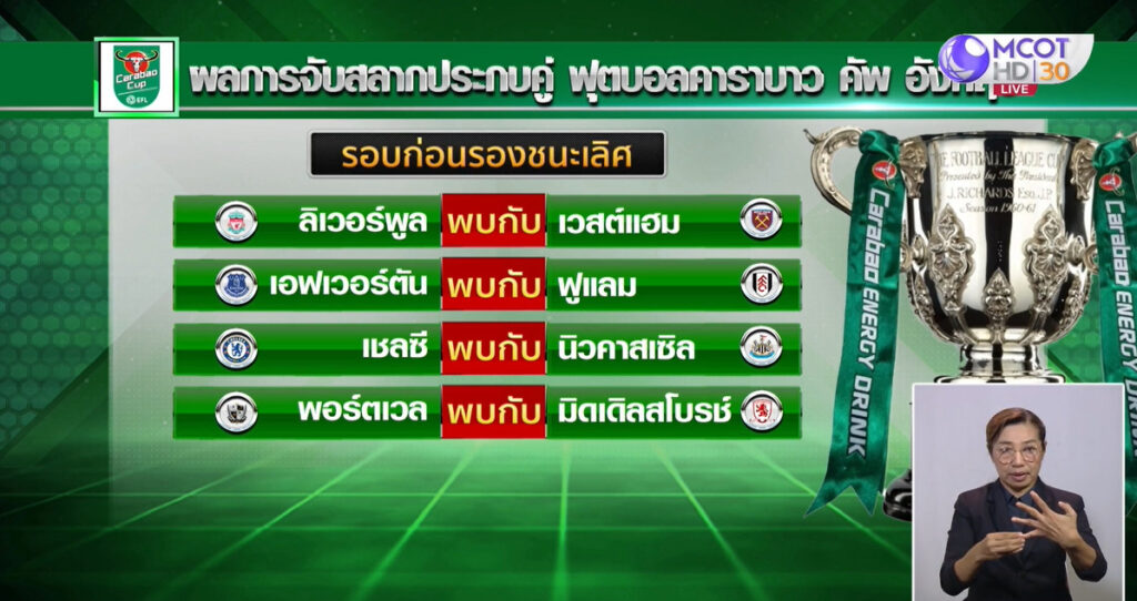 ผลการจับสลากประกบคู่ รอบก่อนรองชนะเลิศ