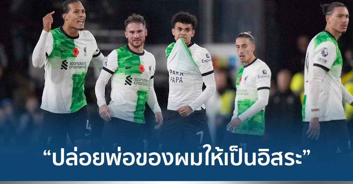 อังกฤษ 6 พ.ย.- “หลุยส์ ดิอาซ” ทำประตูช่วงทดเวลาช่วยให้ลิเวอร์พูล ตีเสมอ ลูตันทาวน์ 1-1 ศึกพรีเมียร์ลีก อังกฤษ พร้อมเปิดข้อความบนเสื้อขอร้องปล่อยพ่อให้เป็นอิสระ