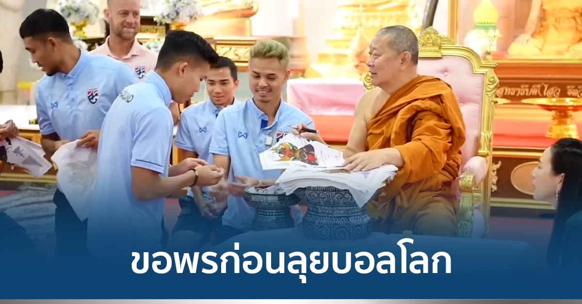วัดไตรมิตรวิทยาราม 13 พ.ย.- นักเตะทีมชาติไทย เข้านมัสการขอพร สมเด็จพระมหารัชมงคลมุนี หรือสมเด็จธงชัย ก่อนลุยศึกฟุตบอลโลก รอบคัดเลือก โซนเอเชีย