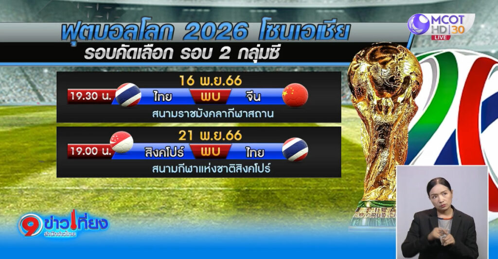 โดยในช่วงเย็นวันนี้ทีมชาติไทย และทีมชาติจีน จะลงฝึกซ้อมที่ราชมังคลากีฬาสถาน และแถลงข่าวความพร้อมเริ่มในเวลา 17.00 น. สำหรับโปรแกรมฟุตบอลทีมชาติไทย วันที่ 16 พฤศจิกายน เวลา 19.30 น. พบ ทีมชาติจีน ที่สนามราชมังคลากีฬาสถาน วันที่ 21 พฤศจิกายน 2566 เวลา 19.00 น. พบ ทีมชาติสิงคโปร์ ที่สนามกีฬาแห่งชาติสิงคโปร์.-สำนักข่าวไทย