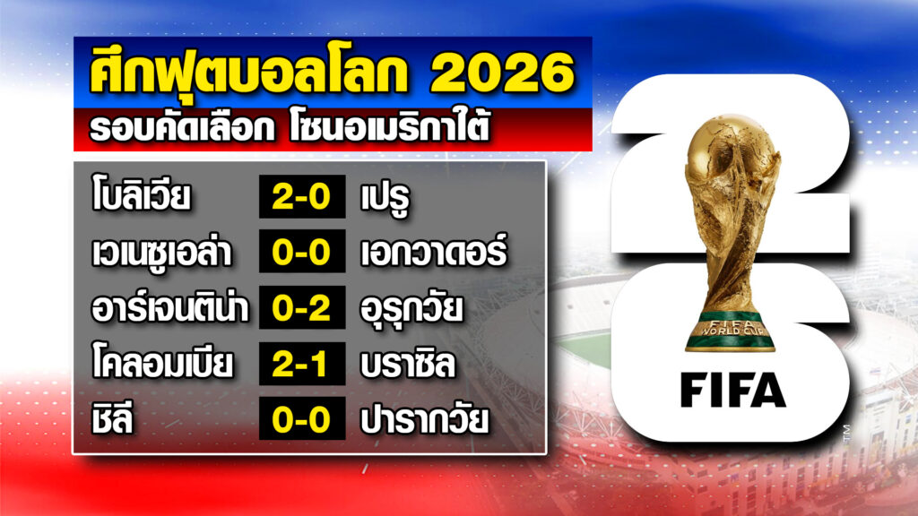 ศึกฟุตบอลโลก 2026 รอบคัดเลือก โซนอเมริกาใต้ นัดที่ 5 “ทีมฟ้าขาว” อาร์เจนติน่า แชมป์โลกทีมล่าสุดที่นำเป็นจ่าฝูงด้วยผลงานชนะ 4 นัดรวด เปิดบ้านพบ “ทีมจอมโหด” อุรุกวัย นาทีที่ 10 ดาร์วิน นูเญซ ดาวยิงของลิเวอร์พูล หลุดเข้าเขตโทษแต่ซัดหลุดเสาสอง ถัดมาเพียง 3 นาที ลิโอเนล เมสซี่ ดาวยิงกัปตันทีมเจ้าถิ่น ได้ปั่นด้วยซ้ายแต่ไปตรงตัวผู้รักษาประตู นาทีที่ 41 มาติอัส บิญญา เปิดบอลไปเสาไกลให้ โรนัลด์ อเราโญ่ สอดขึ้นมายิงลอดขา เอมิเลียโน่ มาร์ติเนซ นายทวารเจ้าถิ่นเข้าไปให้ อุรุกวัย ขึ้นนำ 1-0 ครึ่งหลังนาทีที่ 57 เจ้าถิ่นเกือบได้ประตูตีเสมอจากฟรีคิกของ ลิโอเนล เมสซี่ แต่บอลไปชนคานออกหลัง นาทีที่ 87 นิโคลัส เดอ ลา ครูซ จ่ายทะลุช่องให้ ดาร์วิน นูเญซ กระชากเข้าเขตโทษ ยิงลอดขามาร์ติเนซเข้าไป เป็นประตูย้ำชัยชนะช่วยให้ อุรุกวัย บุกเอาชนะ 2-0 ยัดเยียดความพ่ายแพ้นัดแรกให้อาร์เจนติน่า ในรอบคัดเลือก และถือเป็นความพ่ายแพ้ของเมสซี่ และทีมฟ้าขาว นับตั้งแต่พลิกล็อกพ่าย ซาอุดิอาระเบีย 1-2 ในนัดเปิดสนามฟุตบอลโลก 2022 ที่กาตาร์ แต่อาร์เจนติน่า ยังนำเป็นจ่าฝูง มี 12 คะแนน ส่วนอุรุกวัย ขยับขึ้นมารั้งอันดับ 2 มี 10 คะแนน