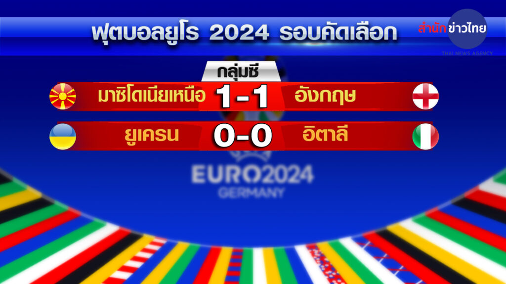 มาซิโดเนียเหนือ 21 พ.ย.- “สิงโตคำราม” อังกฤษ บุกไปเสมอ มาซิโดเนียเหนือ 1-1 ผ่านเข้ารอบสุดท้ายฟุตบอลยูโร 2024 เป็นแชมป์กลุ่มซี