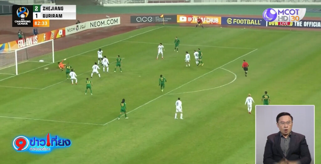 ส่วนในกลุ่มเอช. เจ้อเจียง เอฟซี จากจีน อันดับ 4 ชุดสีเขียว เปิดบ้าน หูโจว โอลิมปิก สปอร์ตเซ็นเตอร์ พบกับ “ปราสาทสายฟ้า” บุรีรัมย์ ยูไนเต็ด ทีมอันดับ 3 ของกลุ่ม นาทีที่ 8 ฮาริส วูชคิช ยิงให้ บุรีรัมย์ ขึ้นนำก่อน 1-0 แต่จากนั้น เจ้อเจียง มาทำประตูแซง 3 ประตูรวด จาก ลีโอนัลโด นาซิเมนโต นาทีที่ 27 ยิงตามตีเสมอ 1-1 ก่อนที่ ฟรานโก แอนดรีจาเซวิค มาทำประตูขึ้นนำ 2-1 ในนาทีที่ 76 และ ลูคัส โพสซิงโนโล มาทำประตูนำห่าง 3-1 นาทีที่ 83 ก่อนที่ บุรีรัมย์ จะทำประตูไล่ตื้นมา 2-3 จาก ลอนซานา ดุมบูญา นาทีที่ 88 จบเกมบุรีรัมย์ บุกไปแพ้ เจ้อเจียง 2-3 ทำให้บุรีรัมย์ มี 6 คะแนน ต้องไปลุ้นเข้ารอบในนัดสุดท้าย ที่จะเปิดบ้านพบ เวนท์ฟอเรท โคฟุ จ่าฝูงที่ มี 8 คะแนน วันที่ 12 ธค นี้ โดย บุรีรัมย์ ต้องชนะเท่านั้นถึงจะผ่านเข้ารอบ