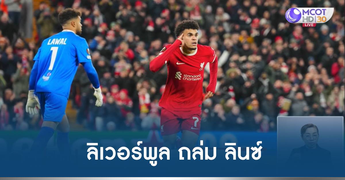 ฟุตบอลยูฟ่า ยูโรป้า ลีก รอบแบ่งกลุ่ม นัดที่ 5 กลุ่มอี. ลิเวอร์พูล เปิดบ้านชนะ แอลเอเอสเค ลินซ์ ทีมจากลีกออสเตรีย 4-0 โดยได้ประตูจากจาก หลุยส์ ดิอาซ นาทีที่ 12 และ โคดี กัคโป นาทีที่ 15 และนาที 90+2 และจากจุดโทษของ โมฮาเหม็ด ซาลาห์ นาที 51 เก็บเพิ่มเป็น 12 แต้มจาก 5 นัด การันตีคว้าแชมป์กลุ่มแน่นอนแล้ว ส่วน แอลเอเอสเค ลินซ์ มีแค่ 3 แต้มจาก 5 นัด ตกรอบแน่นอน แต่ยังมีลุ้นแย่งที่ 3 ไปเล่นในถ้วย คอนเฟอเรนซ์ ลีก