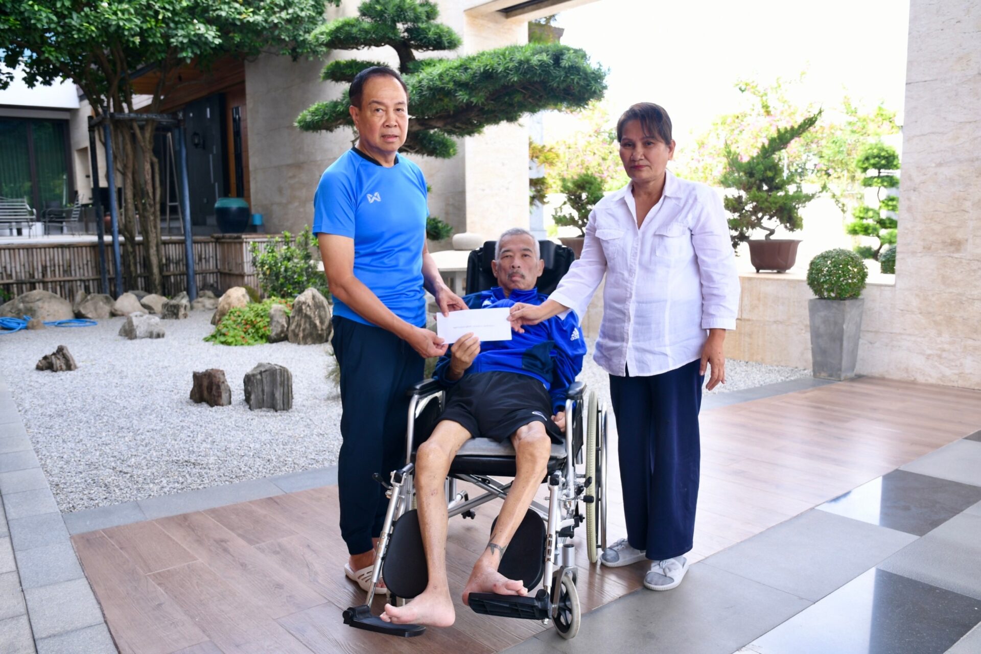 “วันนี้โค้ชแดงมีอาการดีขึ้น และอยากออกไปข้างนอกบ้าง เพราะปกติไม่ได้ออกไปไหนเลย จึงแจ้งน้อง จนท.สมาคมฯ ที่คอยประสานงานและช่วยเหลือมาตลอด ขอเข้าพบนายกสมาคมฯ ได้จัดรถมารับและคอยดูแลอำนวยความสะดวกให้กับโค้ชแดง ขอบคุณท่านนายกฯ อีกครั้งที่อำนวยความสะดวกด้านต่างไม่ว่าจะเป็นการมอบเงินช่วยเหลือ จัดรถรับส่ง ส่งสิ่งของและน้ำดื่มมาให้“