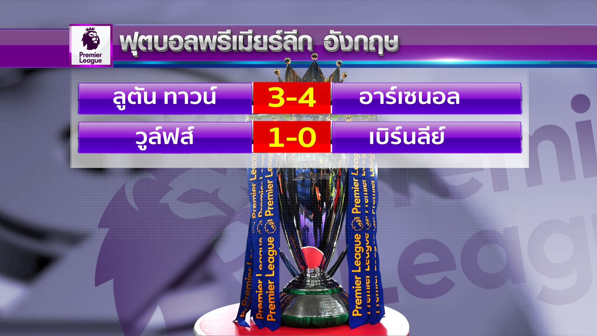 ฟุตบอลพรีเมียร์ลีก อังกฤษ อาร์เซนอล บุกไปเฉือนชนะ ลูตัน ทาวน์ ทีมน้องใหม่ 4-3 เกมนี้ อาร์เซนอล ได้ประตูจาก กาเบรียล มาร์ติเนลลี ในนาทีที่ 20, กาเบรียล เชซุส นาที 45, อาร์เซนอล ตามตีเสมอเป็น 3-3, ไค ฮาแวร์ตซ์ นาที 60 และ เดแคลน ไรซ์ มาทำประตูชัย นาทีที่ 90+7