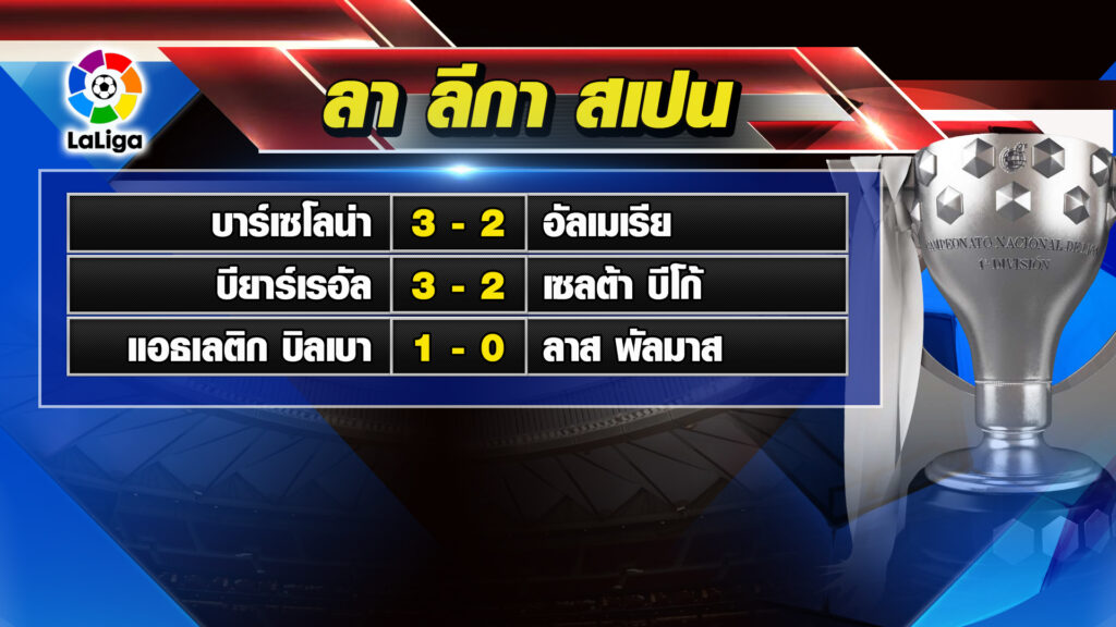 อีกคู่ โวล์ฟสบวร์ก พบ “ทีมเสือใต้” บาเยิร์น มิวนิค นาทีที่ 33 จามาล มูเซียลา ฉลองการเล่นสนามนัดที่ 100 โขกให้บาเยิร์น ขึ้นนำก่อน 1-0 นาทีที่ 43 แฮร์รี เคน ดาวยิงทีมชาติอังกฤษ ซัดด้วยขวานอกกรอบเขตโทษเข้าไปเป็นประตูที่ 21 ในฤดูกาลนี้ให้ บาเยิร์น นำห่าง 2-0 แต่ช่วงทดเวลาครึ่งแรกนาทีที่ 45+1 มักซิมิเลียน อาร์โนลด์ มาซัดด้วยซ้ายเป็นประตูตีไข่แตกได้สำเร็จ ก่อนจบเกม บาเยิร์น จะเฉือนเอาชนะ 2-1 มี 38 คะแนน รั้งรองจ่าฝูง ตามหลัง เลเวอร์คูเซน 4 คะแนน