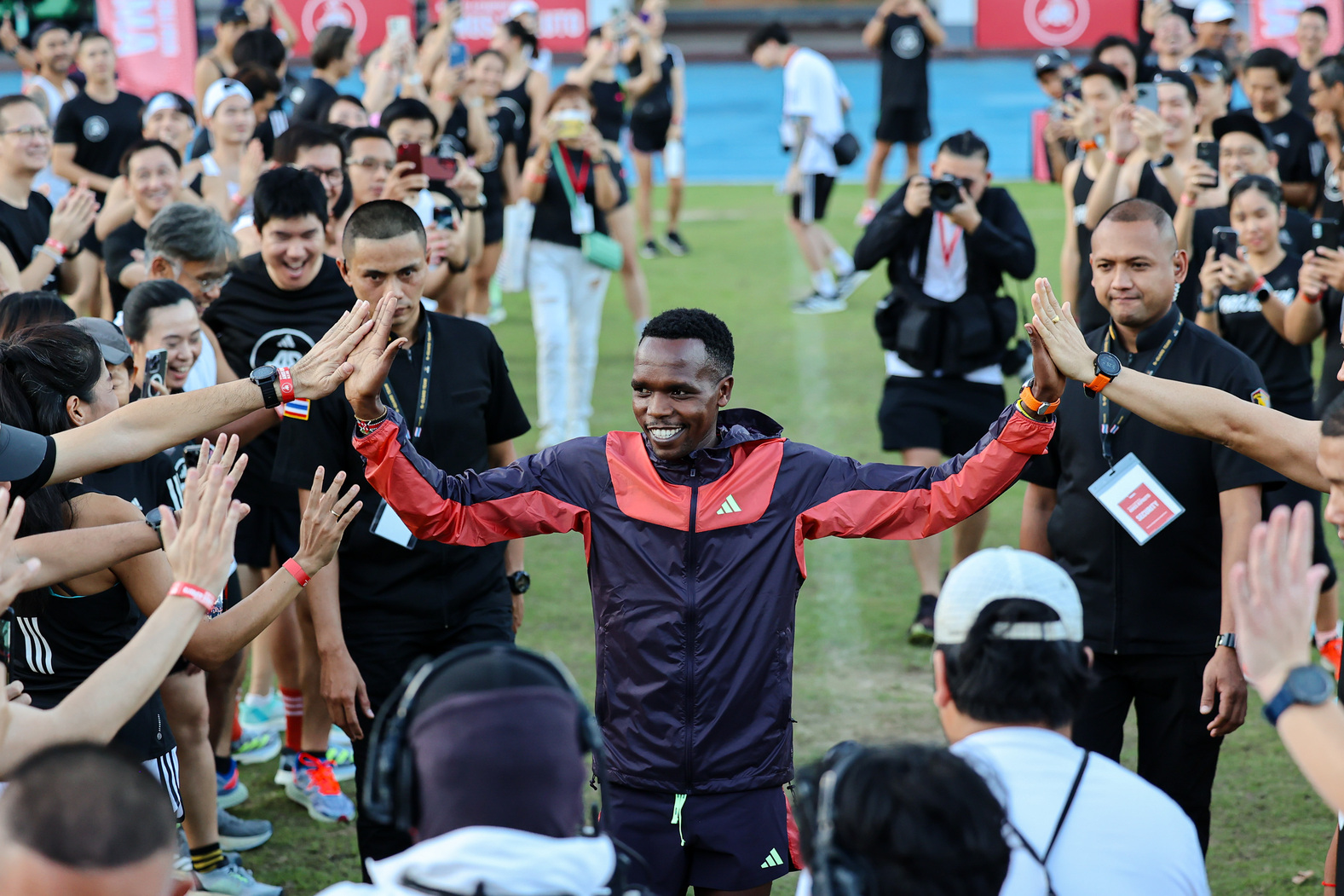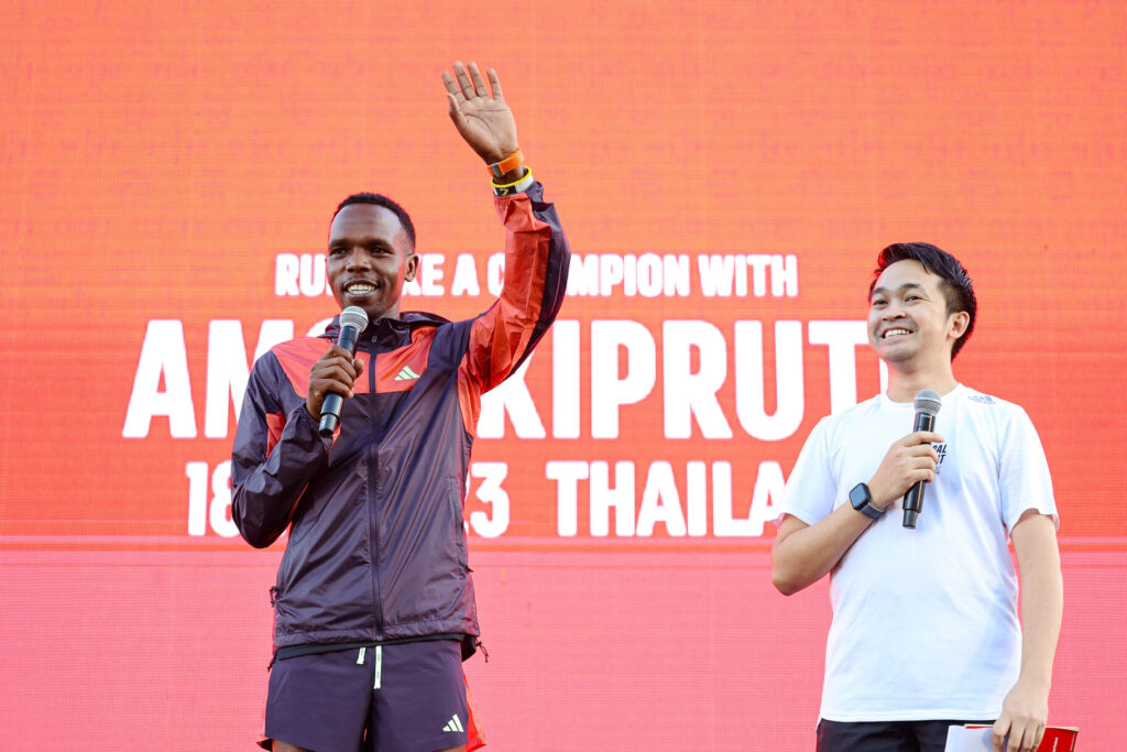 กทม. -20 ธ.ค. – อามอส คิปรูโต สุดยอดนักวิ่งมาราธอนระดับโลก เจ้าของแชมป์ลอนดอน มาราธอน ปี 2022 เข้าร่วมงาน “RUN LIKE A CHAMPION WITH AMOS KIPRUTO” ของอาดิดาส ประเทศไทย ที่เชิญ คิปรูโต มาร่วมแบ่งปันเทคนิคการฝึกซ้อมวิ่งสไตล์อีลีท พร้อมร่วมลงสนามวิ่งเคียงข้างนักวิ่งจาก adidas Runners Bangkok กว่า 200 คน ในระยะทาง 5.2 กิโลเมตร ร่วมกับนักกีฬาชาวไทย อย่าง นายสัญชัย นามเขต และ นายปฏิการ เพชรศรีชา หรือ โค้ชเดี่ยว อดีตนักวิ่งทีมชาติไทยมากความสามารถ ที่สนามกีฬากลางมหาวิทยาลัยเทคโนโลยีราชมงคลกรุงเทพ หรือ UTK Stadium