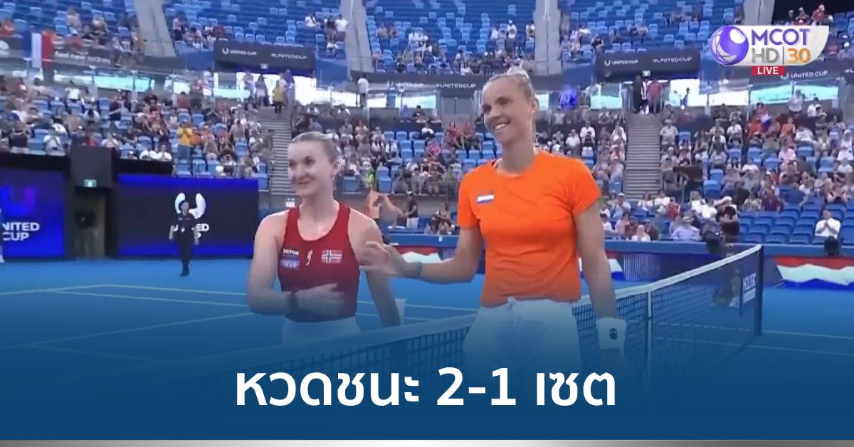 เทนนิส ยูไนเต็ด คัพ ประเภททีมผสมชาย-หญิงรายการนานาชาติ ที่ซิดนีย์ ประเทศออสเตรเลีย กลุ่มเอฟ.นัดแรก ทีมชาตินอร์เวย์ พบกับ เนเธอร์แลนด์ หญิงเดี่ยวคู่แรก อารานต์ซา รัส จากเนเธอร์แลนด์ เสื้อสีส้ม หวดชนะ มาลีน เฮลโก้ จากนอร์เวย์ 2-1 เซต 7-6 ไทเบรค 7-4 และ 6-1 ช่วยให้เนเธอร์แลนด์ขึ้นนำก่อน 1-0 คู่
