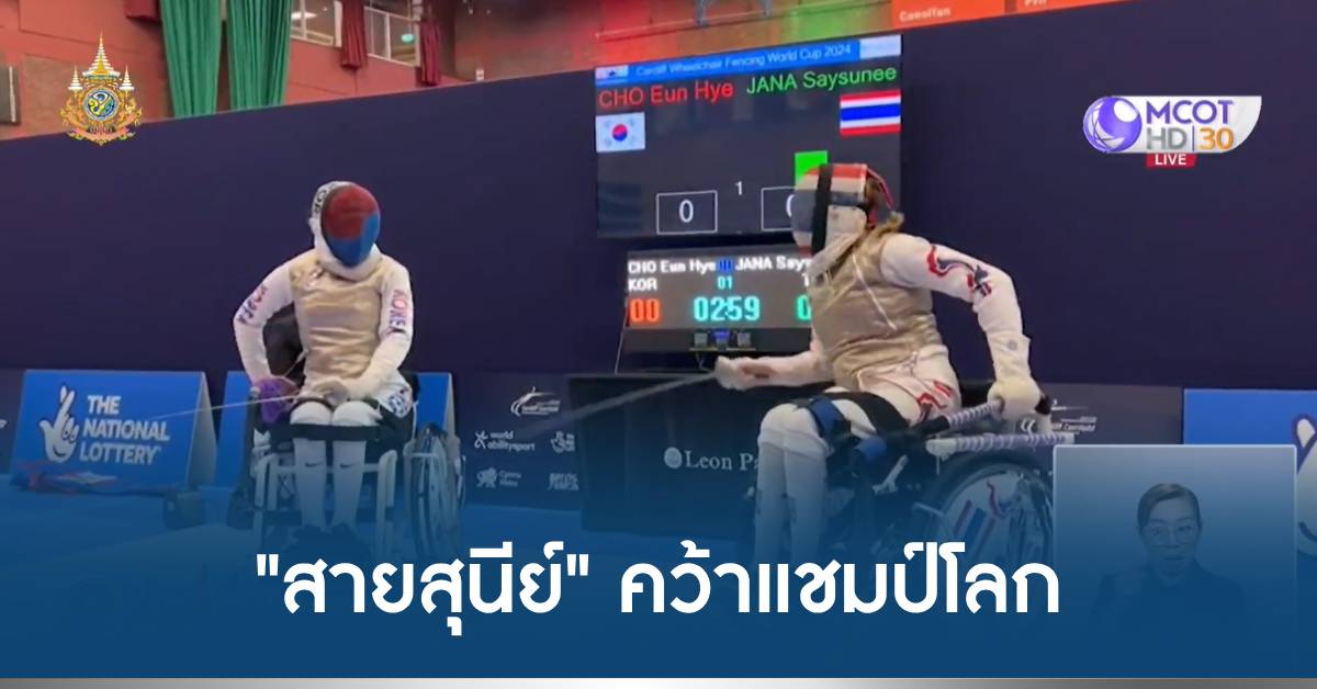 เวลส์ 12 ม.ค.-“แวว” สายสุนีย์ จ๊ะนะ นักกีฬาวีลแชร์ฟันดาบทีมชาติไทย ยังเดินหน้ากวาดแชมป์อย่างต่อเนื่อง ล่าสุดคว้าแชมป์ “วีลแชร์ฟันดาบ เวิลด์คัพ” ที่เมืองคาร์ดิฟฟ์ ของเวลส์