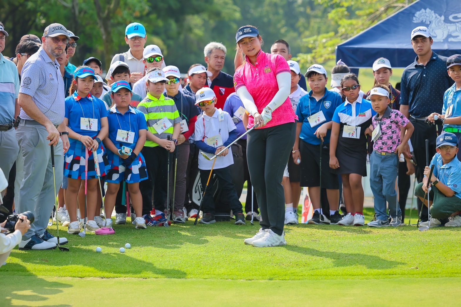 ในงานครั้งนี้มีโปรสาวแนวหน้าของไทยร่วมกิจกรรม นำโดย มายด์” ตรีฉัตร จีนกลับ นักกอล์ฟมือหนึ่งและเจ้าของรางวัลรุกกี้ออฟเดอะเยียร์ เลดี้ส์ ยูโรเปี้ยนทัวร์ 2023, ณัฐกฤตา วงศ์ทวีลาภ, จารวี บุญจันทร์, วิชาณี มีชัย โปรแอลพีจีเอทัวร์, พริมา ธรรมมารักษ์ โปรในเอ็ปสันทัวร์, ปัณณรัตน์ ธนพลบุญรัศมิ์ ที่ฤดูกาลนี้จะลงล่ารางวัลในเจแปน แอลพีจีเอ ทัวร์ ซึ่งเด็กๆ ที่เข้าร่วมกิจกรรมครั้งนี้ได้เรียนรู้กีฬากอล์ฟและเทคนิคเบื้องต้นต่างๆ เช่น การพัตต์ การเล่นลูกจากบังเกอร์ การชิพ การเล่นช็อตแอพโพชร และการไดร์ฟ ท่ามกลางบรรยากาศสนุกสนานเป็นกันเอง-614