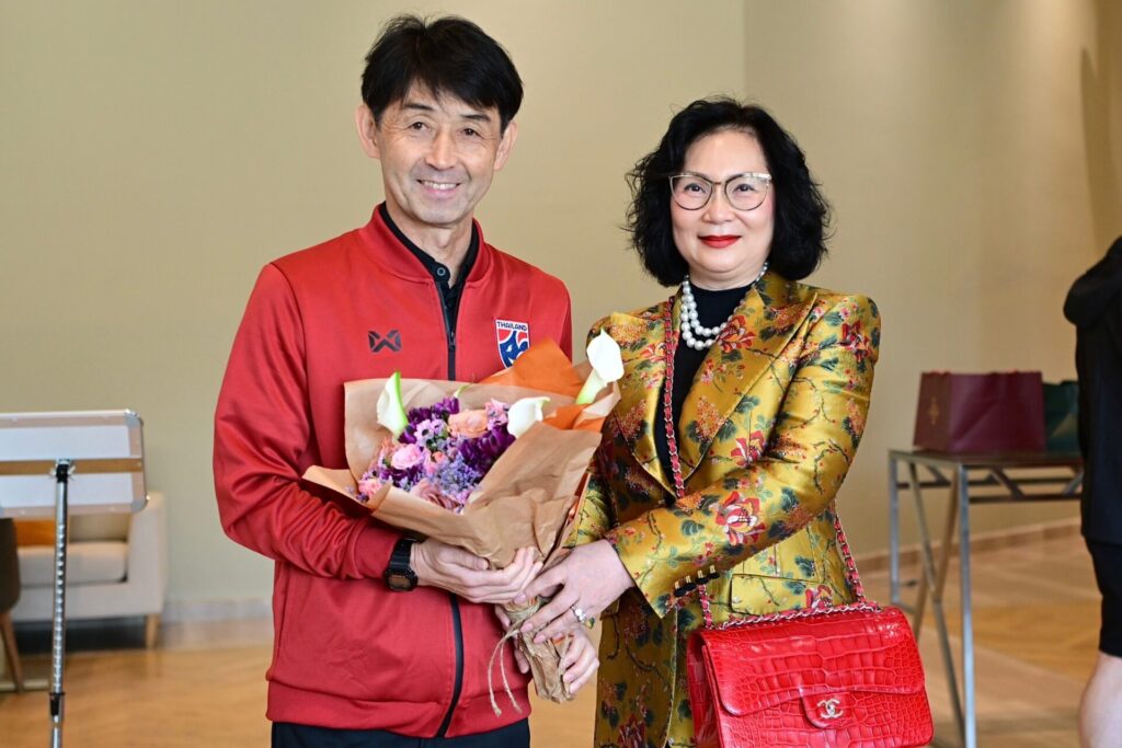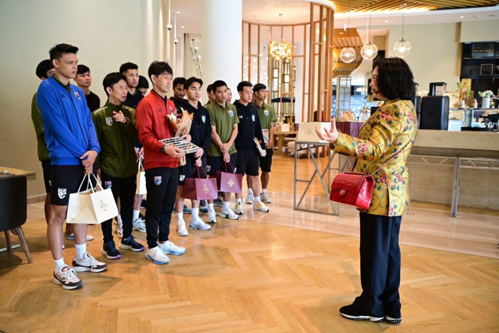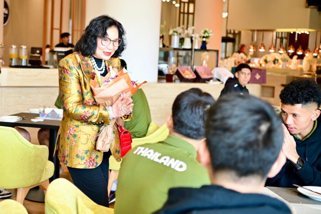 13 ม.ค.67-คุณหญิงปัทมา ลีสวัสดิ์ตระกูล กรรมการคณะกรรมการโอลิมปิกสากล (IOC) และคณะกรรมการบริหารสภาโอลิมปิกแห่งเอเชีย เข้าให้โอวาทพร้อมส่งกำลังใจให้แก่ คณะนักฟุตบอลชายทีมชาติไทยก่อนสู้ศึกเอเชียนคัพ2023 ที่ กาตาร์