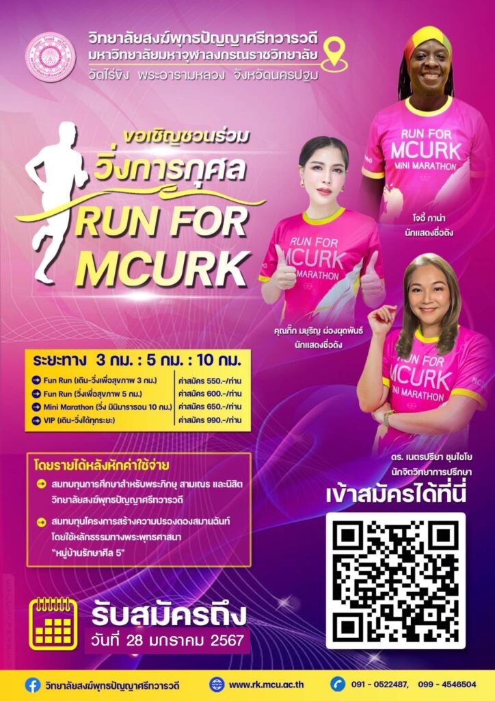 มจร. วัดไร่ขิง จัดงานวิ่งระดมทุมโชว์เหรียญพระเครื่องดัง พร้อมช่วยนักเรียนยากไร้ – ผู้ป่วยติดเตียง พระมหาบุญเลิศ อินทฺปญโญ,ศ.ดร.รองผู้อำนวยการฝ่ายบริหารวิทยาลัยสงฆ์พุทธปัญญาศรีทวารวดี มหาวิทยาลัยมหาจุฬาลงกรณราชวิทยาลัย หรือ มจร. วัดไร่ขิง มีนโยบายในการพัฒนาจิตใจและสังคม เริ่มต้นดี ปี 2567 ขอเชิญชวนประชาชน นักเรียน นิสิต นักศึกษาหันมาใส่ใจสุขภาพไปพร้อมกับการทำบุญ ด้วยการจัดโครงการวิ่งมินิฮาล์ฟมาราธอน“วิ่งการกุศล RUN FOR MCURK” ครั้งที่ 1 จัดขึ้นในวันที่ 28 ม.ค. 2567นี้ ณ เกาะลัดอีแท่น อำเภอสามพราน จังหวัดนครปฐม เพื่อระดมทุนอย่างเป็นทางการ นับว่าครั้งนี้ถือเป็นครั้งแรก ของ วิทยาลัยสงฆ์พุทธปัญญาศรีทวารวดี โดยรายได้หลังหักค่าใช้จ่าย จะนำไปเป็นทุนสนับสนุนการศึกษาสำหรับนักเรียนยากไร้ และให้ความช่วยเหลือผู้ป่วยติดเตียงตามหมู่บ้านรักษาศีล 5 และเพื่อสมทบทุนการศึกษา แด่พระภิกษุ สามเณร นิสิตนักศึกษา สำหรับประเภทการแข่งขันประกอบด้วย Fun Run(เดิน-วิ่งเพื่อสุขภาพ 3 กม.) (วิ่งเพื่อสุขภาพ 5 กม.) (วิ่ง มินิมาราธอน 10 กม.) และ VIP (เดิน-วิ่งได้ทุกระยะ) ในวันที่ 28 มกราคมนี้ ณ เกาะลัดอีแท่น อ.สามพราน จ.นครปฐม